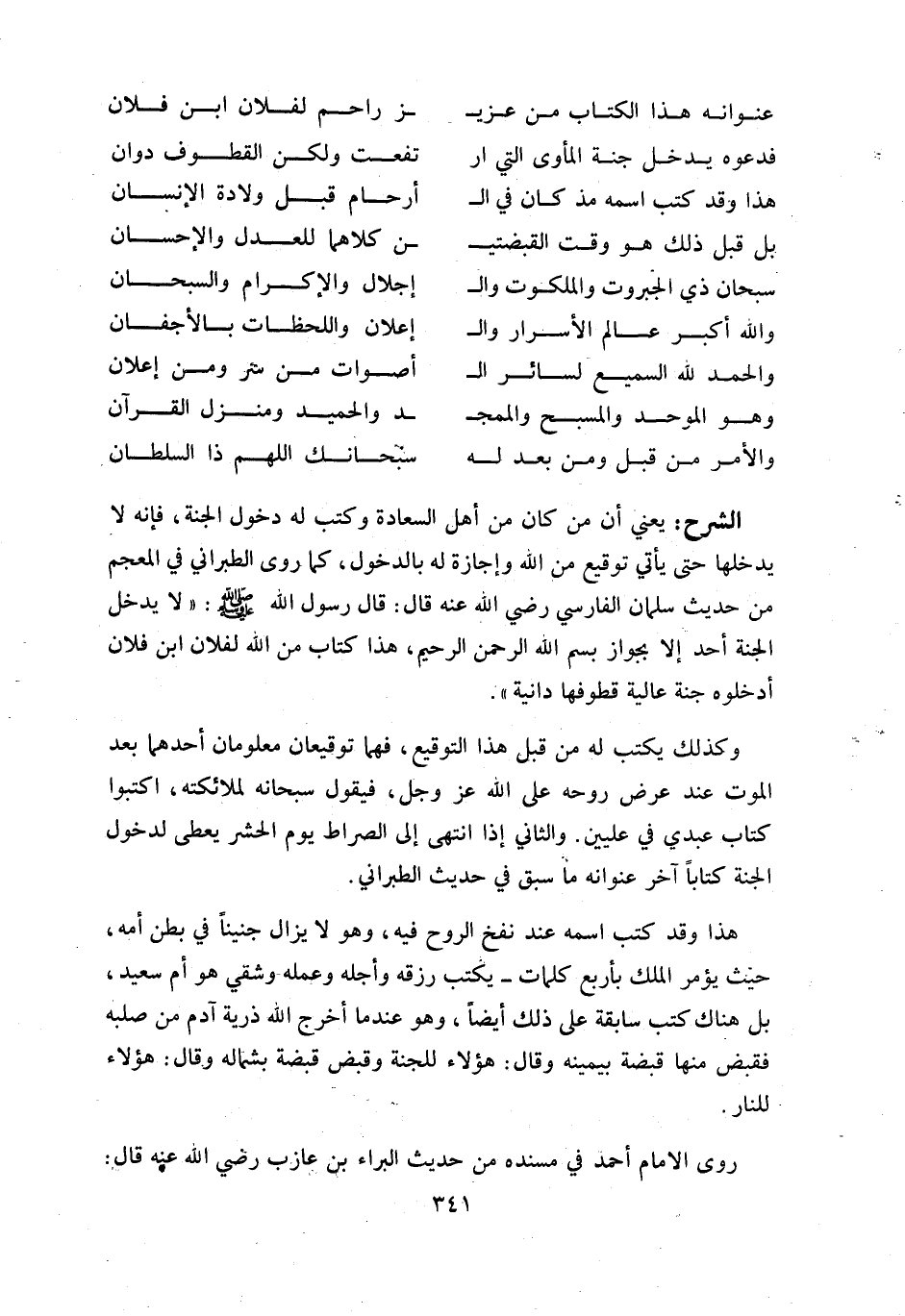 روى الامام أحمد في مسنده من حديث البراء بن عازب رضي اللّه عنه قال: