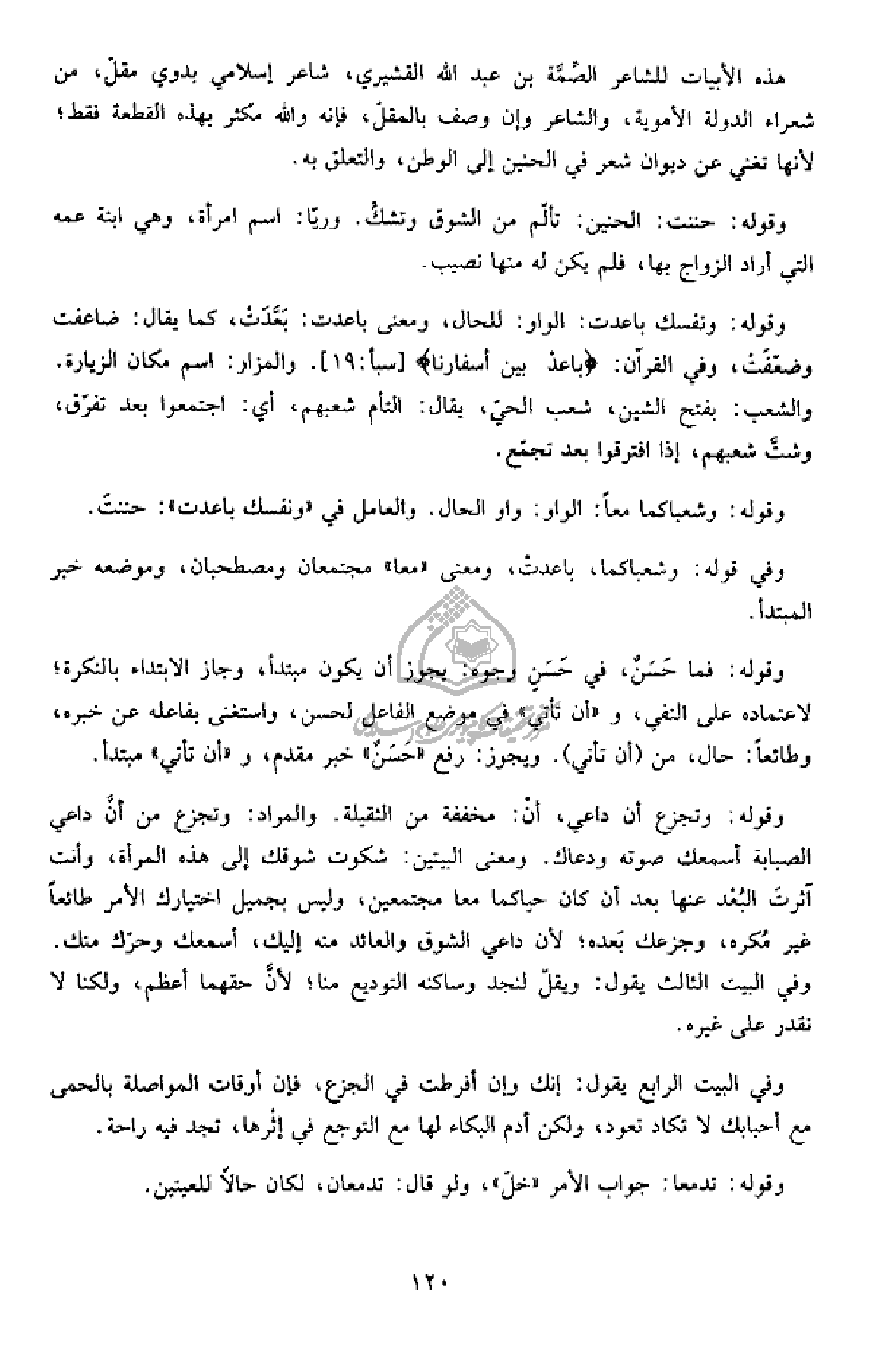 وفي البيت الرابع يقول: إنك وإن أفرطت في الجزع، فإن أوقات المواصلة بالحمى مع أحبابك لا تكاد تعود، ولكن أدم البكاء لها مع التوجع في إثرها، تجد فيه راحة.