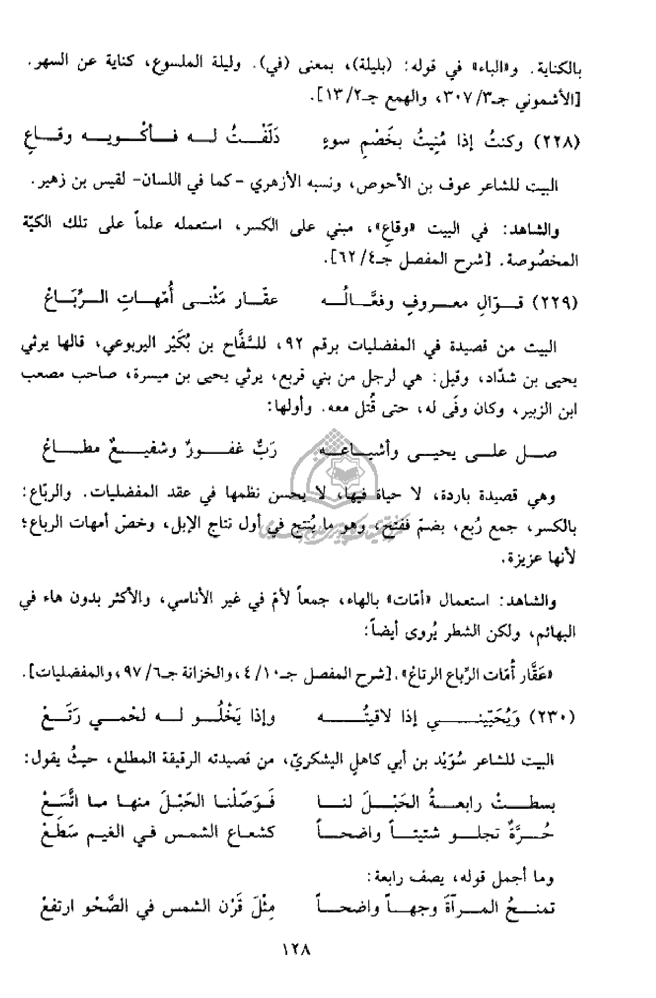 والشاهد: في البيت «وقاع»، مبني على الكسر، استعمله علما على تلك الكيّة المخصوصة. [شرح المفصل ج 4/ 62].