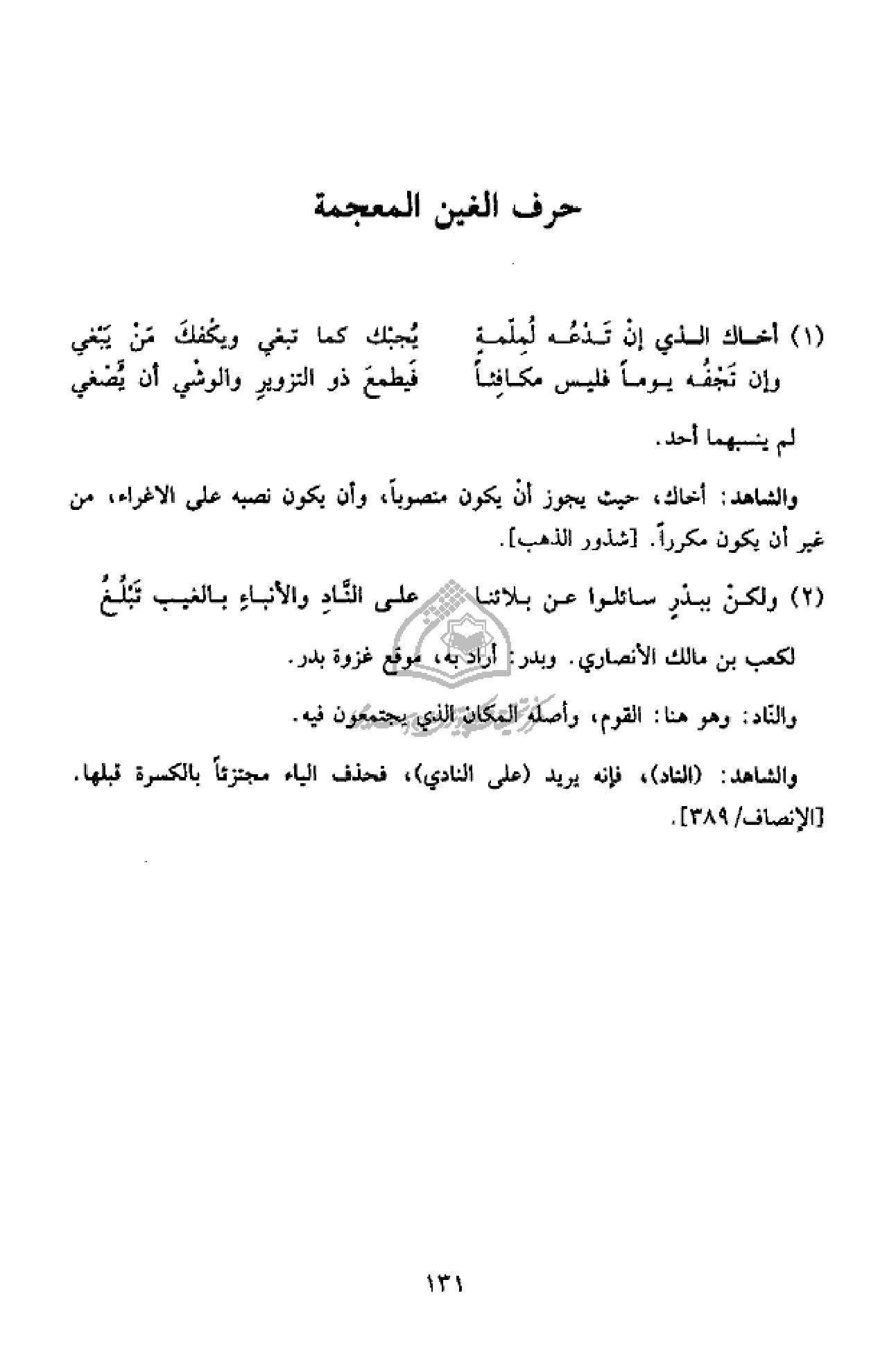 والشاهد: (الناد)، فإنه يريد (على النادي)، فحذف الياء مجتزئا بالكسرة قبلها.