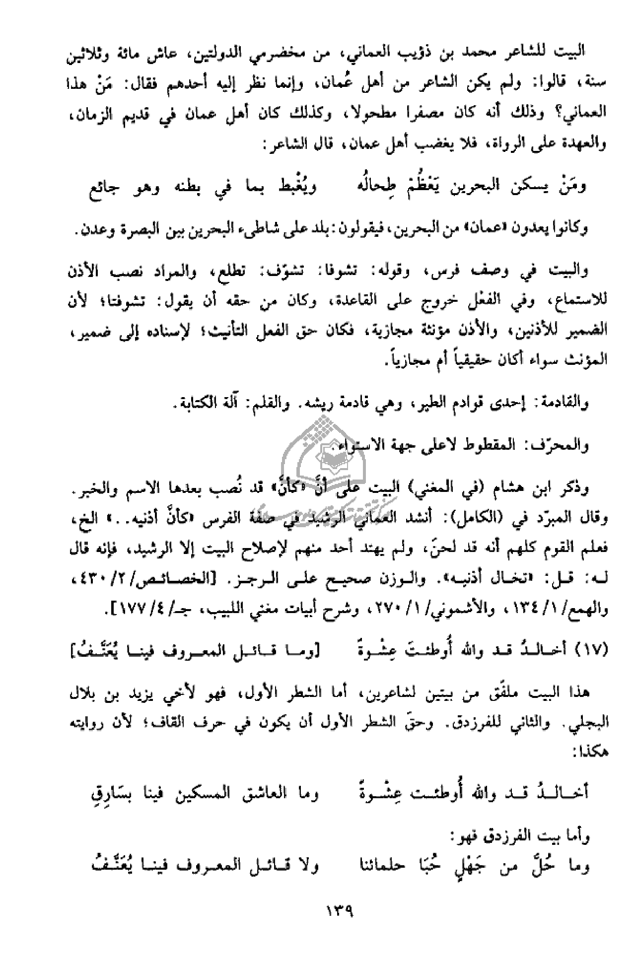 وقال المبرّد في (الكامل): أنشد العماني الرشيد في صفة الفرس «كأنّ أذنيه ..» الخ، فعلم القوم كلهم أنه قد لحن، ولم يهتد أحد منهم لإصلاح البيت إلا الرشيد، فإنه قال له: قل: «تخال أذنيه». والوزن صحيح على الرجز. [الخصائص/ 2/ 430، والهمع/ 1/ 134، والأشموني/ 1/ 270، وشرح أبيات مغني اللبيب، ج/ 4/ 177].