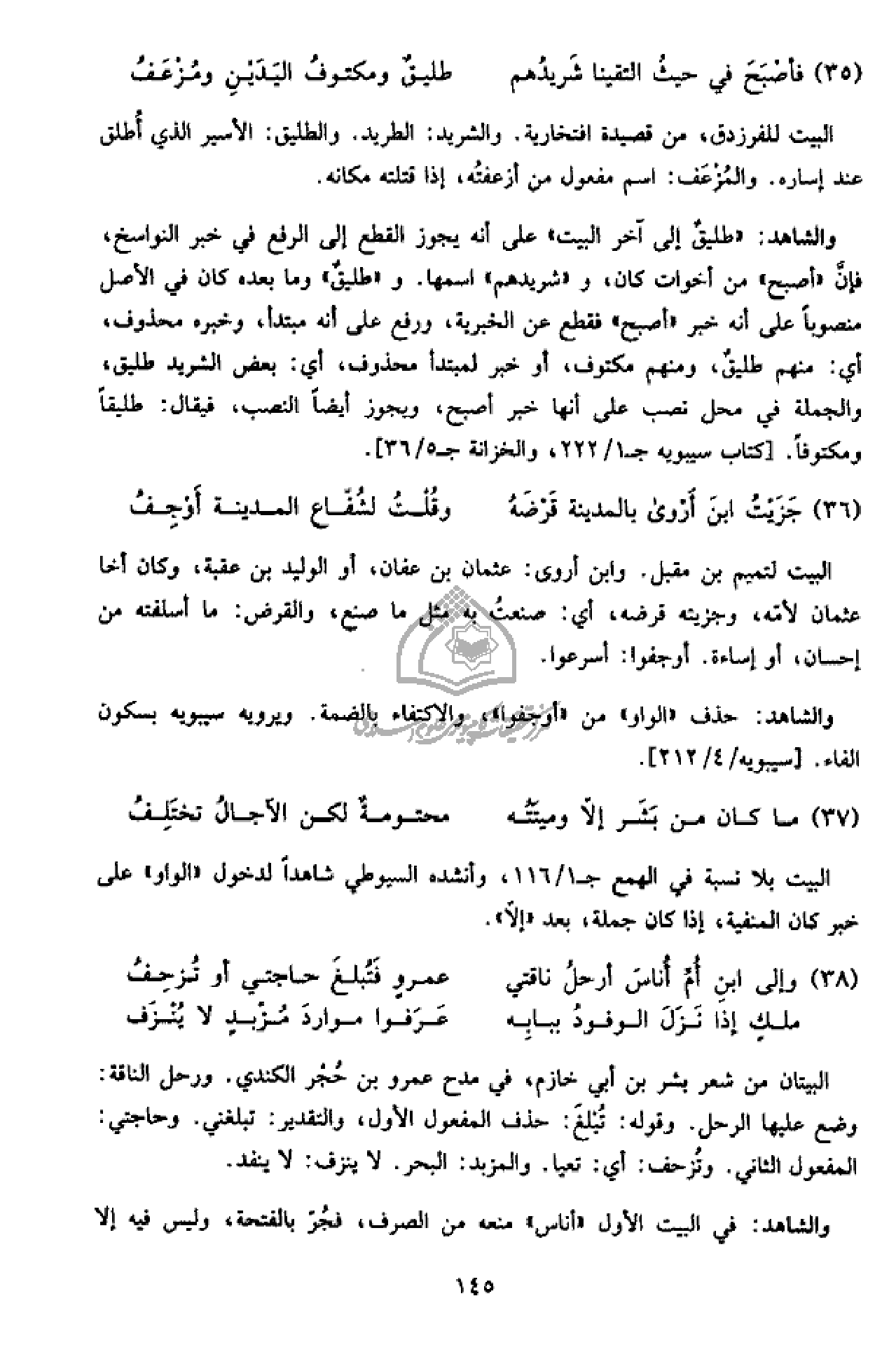 36 - جزيت ابن أروى بالمدينة قرضه … وقلت لشفّاع المدينة أوجف