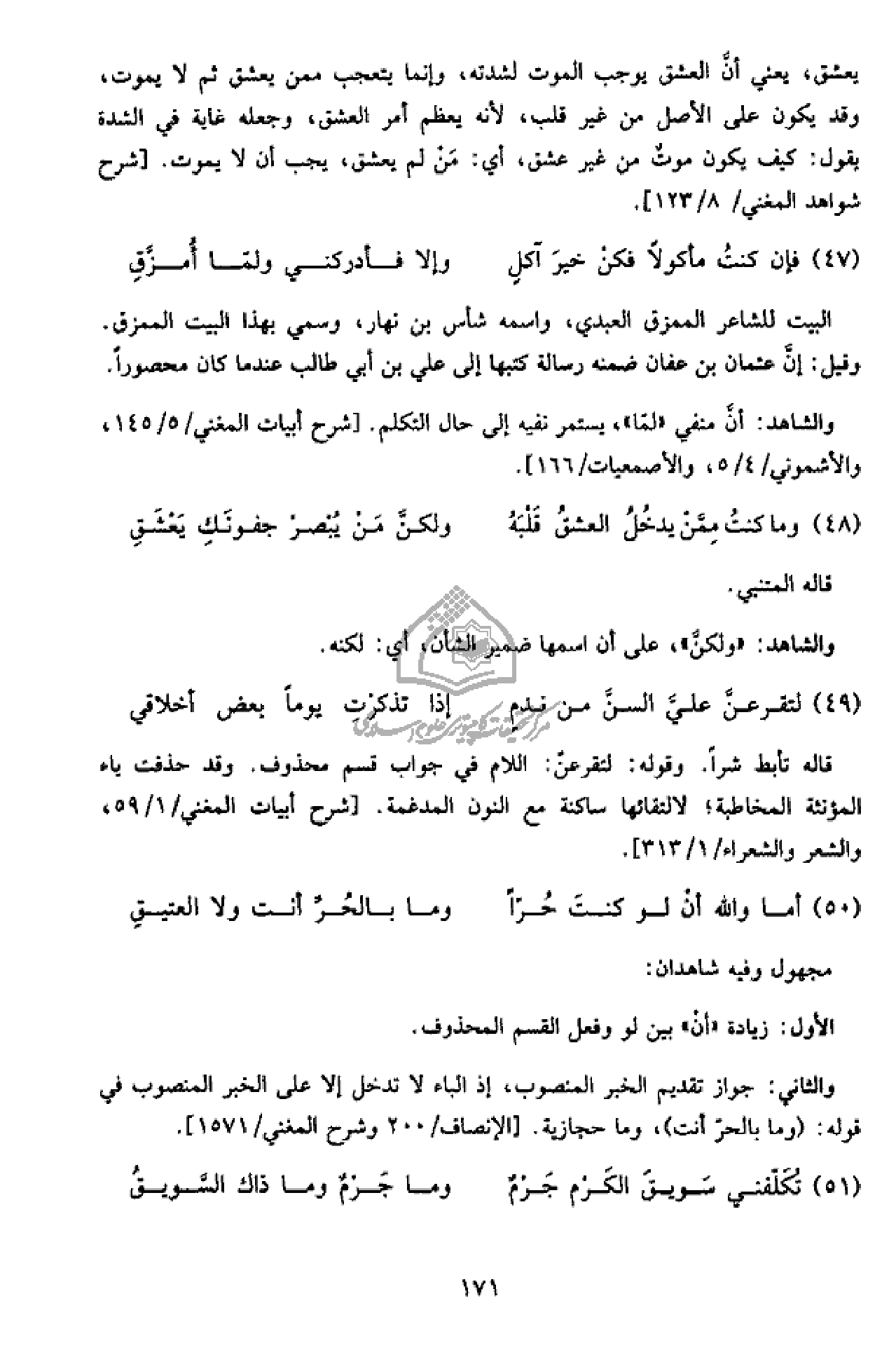 والشاهد: أنّ منفي «لمّا»، يستمر نفيه إلى حال التكلم. [شرح أبيات المغني/ 5/ 145، والأشموني/ 4/ 5، والأصمعيات/ 166].