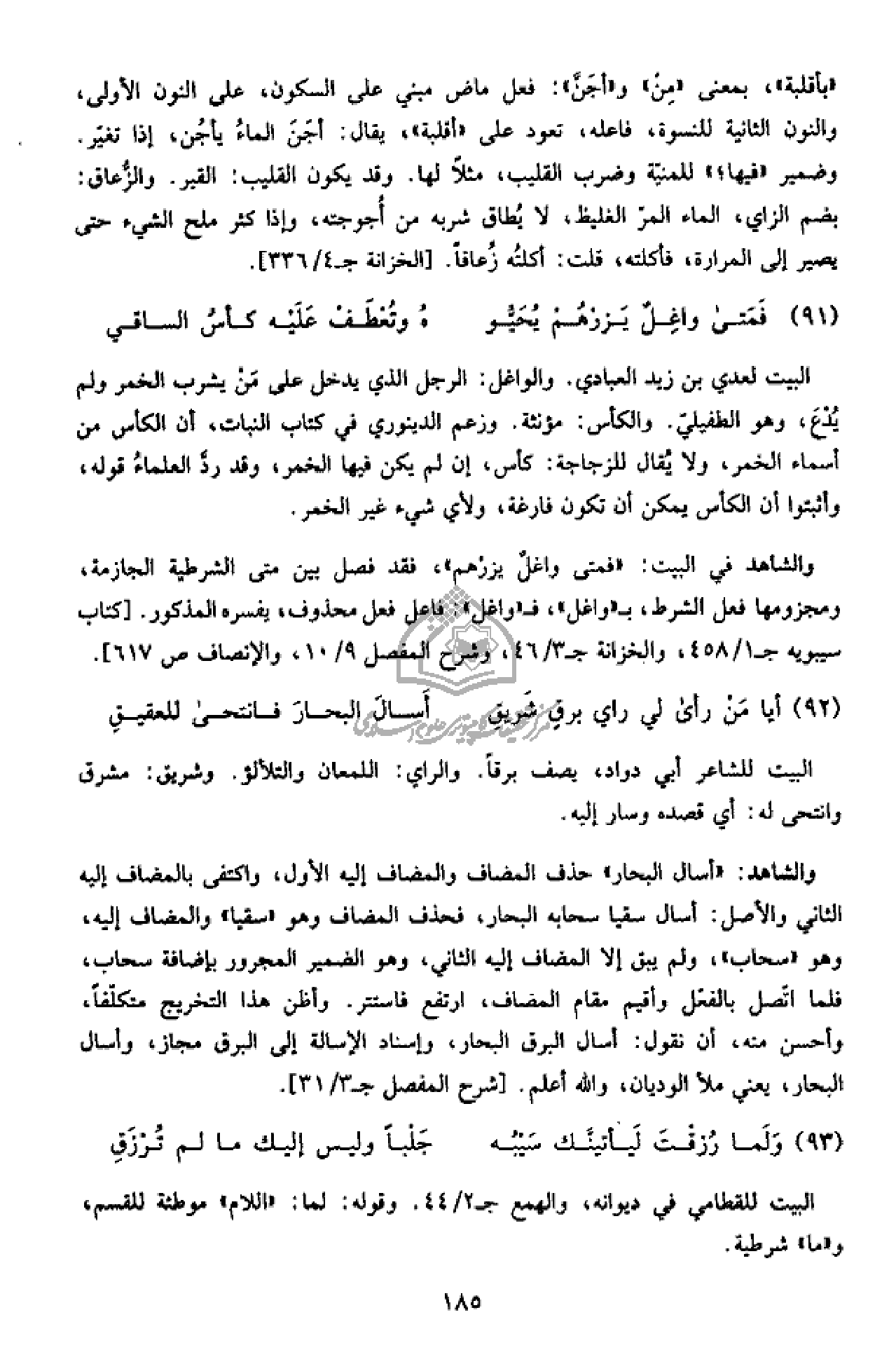 91 - فمتى واغل يزرهم يحيّو … هـ وتعطف عليه كأس الساقي