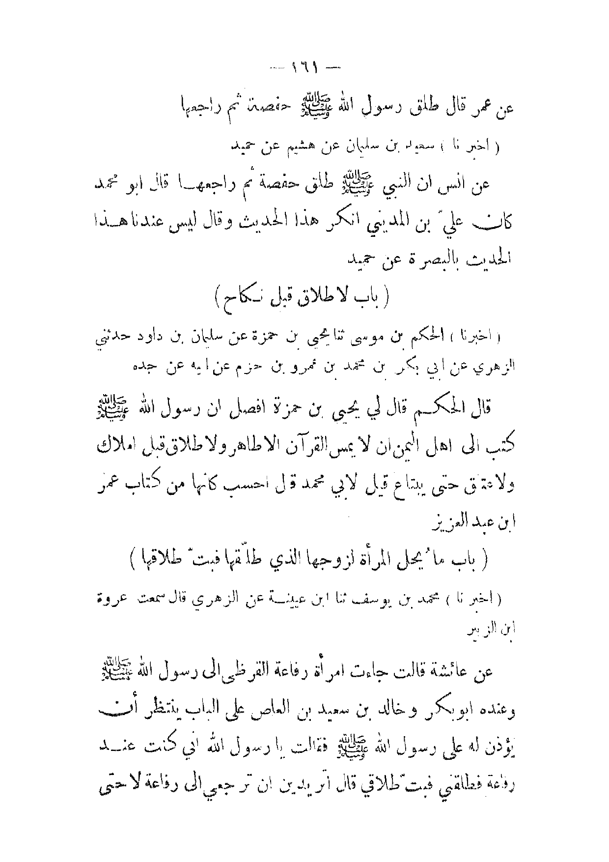[ 161 ] عن عمر قال طلق رسول الله صلى الله عليه وسلم حفصة ثم راجعها
