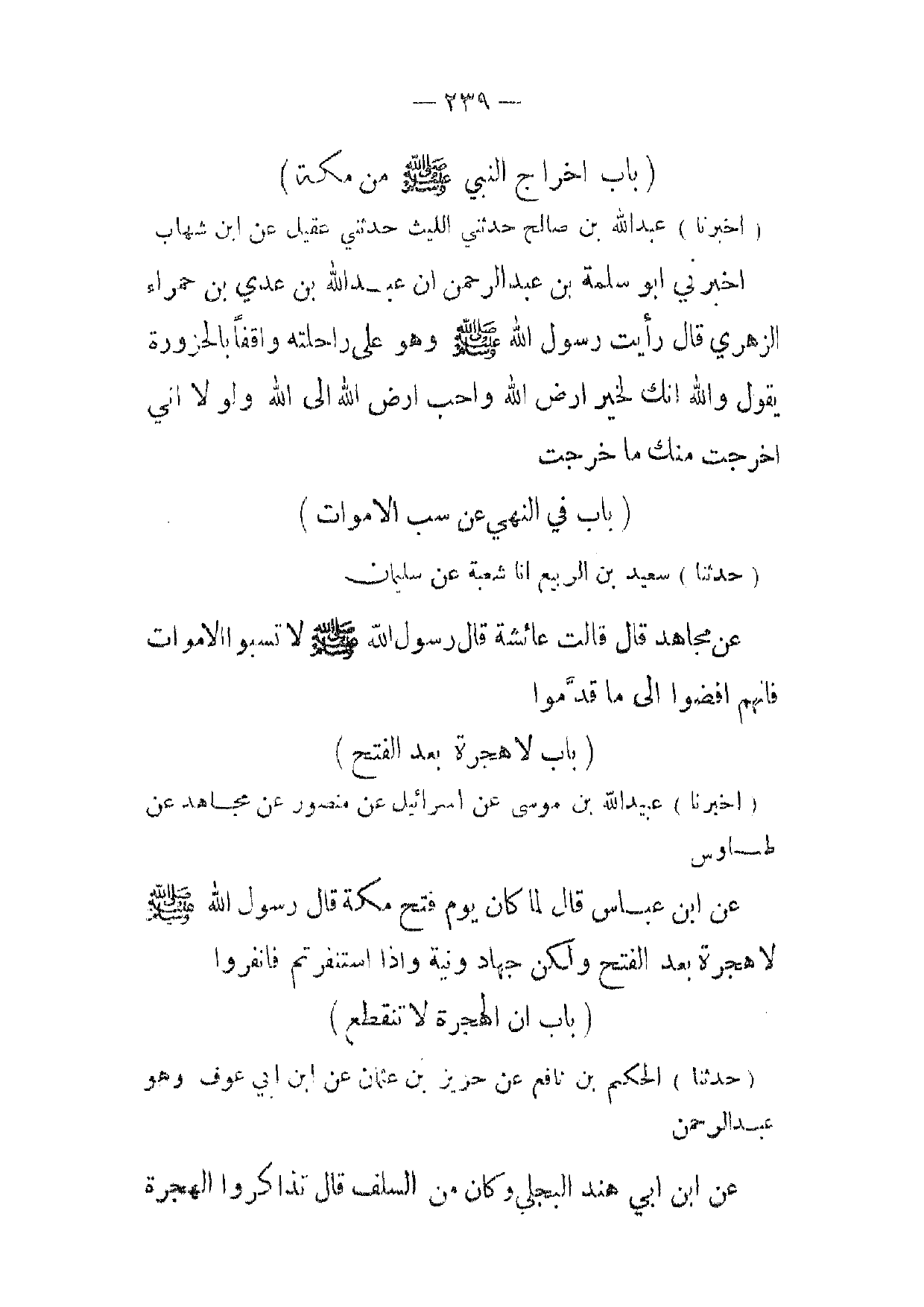 (أخبرنا) عبيدالله بن موسى عن اسرائيل عن منصور عن مجاهد عن طاوس عن ابن عباس قال لما كان يوم فتح مكة قال رسول الله صلى الله عليه وآله لا هجرة بعد الفتح ولكن جهاد ونية وإذا استنفرتم فانفروا