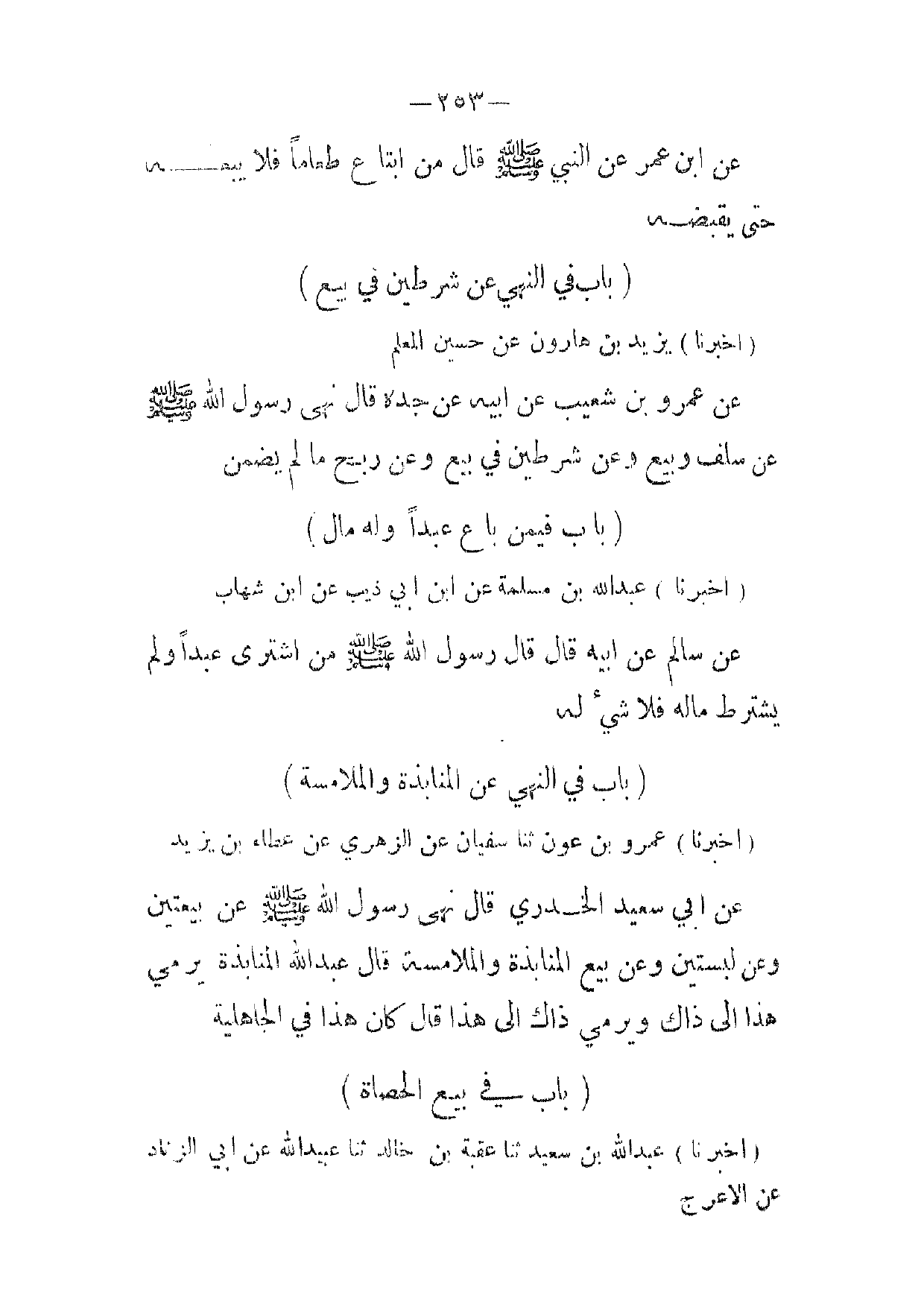 [ 253 ] عن ابن عمر عن النبي صلى الله عليه وسلم قال من ابتاع طعاما فلا يبعه حتى يقبضه