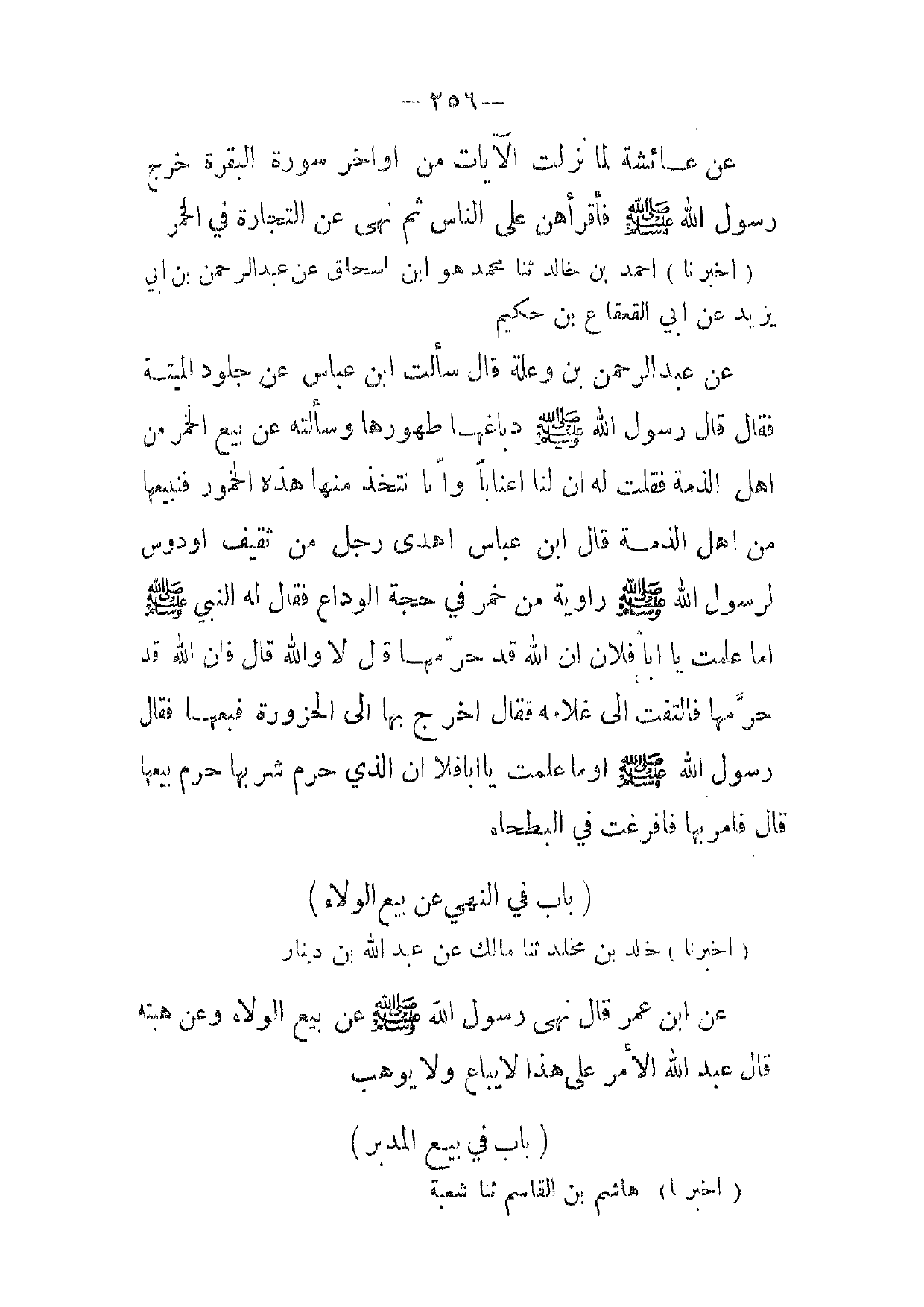 [ 256 ] عن عائشة لما نزلت الآيات من اواخر سورة البقرة خرج رسول الله صلى الله عليه وسلم فأقرأهن على الناس ثم نهى عن التجارة في الخمر