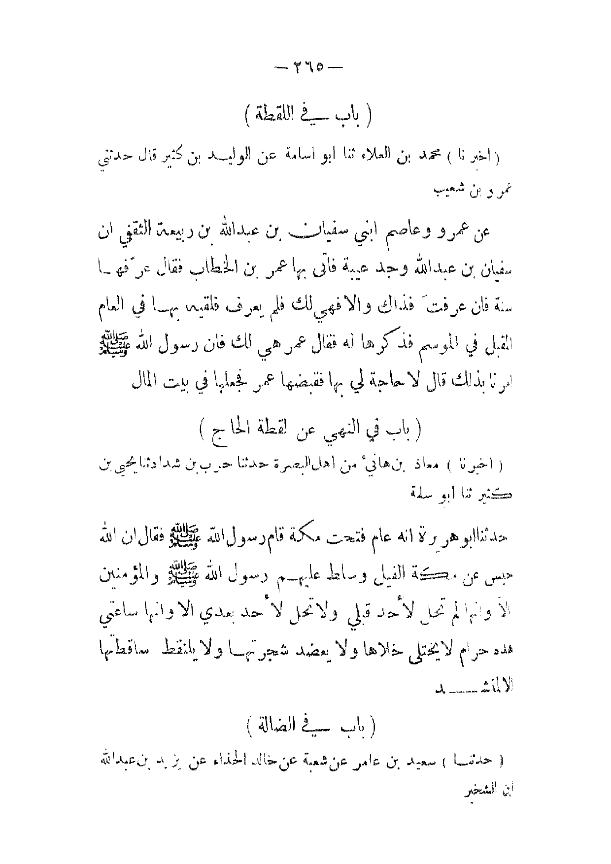 (أخبرنا) معاذ بن هانئ من اهل البصرة حدثنا حرب بن شداد ثنا يحيى بن كثير ثنا أبو سلمة حدثنا أبو هريرة انه عام فتحت مكة قام رسول الله صلى الله عليه وآله فقال ان الله حبس عن مكة الفيل وسلط عليهم رسول الله صلى الله عليه وآله والمؤمنين الا وانها لم تحل لاحد قبلي ولا تحل لاحد بعدي الا وانها ساعتي هده حرام لا يختلى خلاها ولا يعضد شجرتها ولا يلتقط ساقطتها الا لمنشد