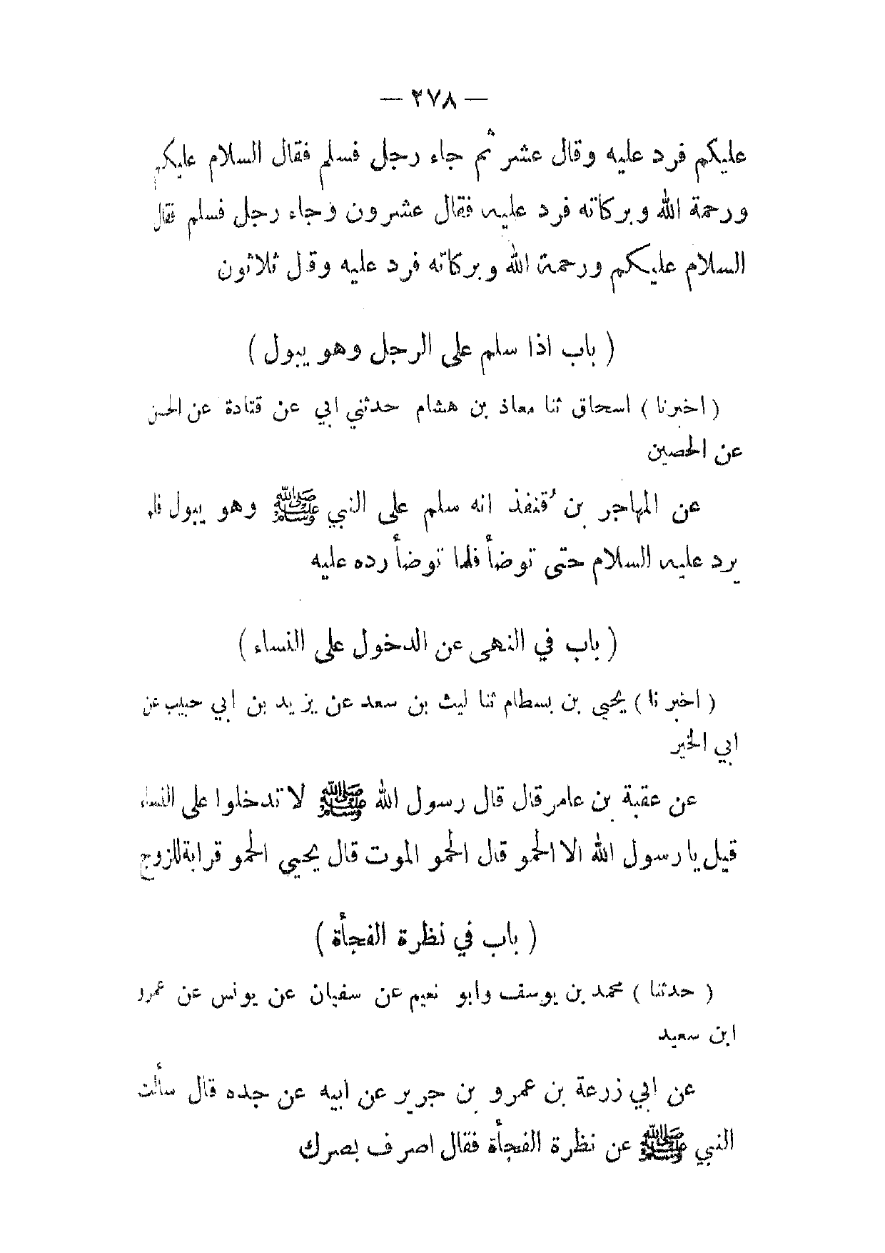 [ 278 ] عليكم فرد عليه وقال عشر ثم جاء رجل فسلم فقال السلام عليكم ورحمة الله وبركاته فرد عليه فقال عشرون وجاء رجل فسلم فقال السلام عليكم ورحمة الله وبركاته فرد عليه وقال ثلاثون