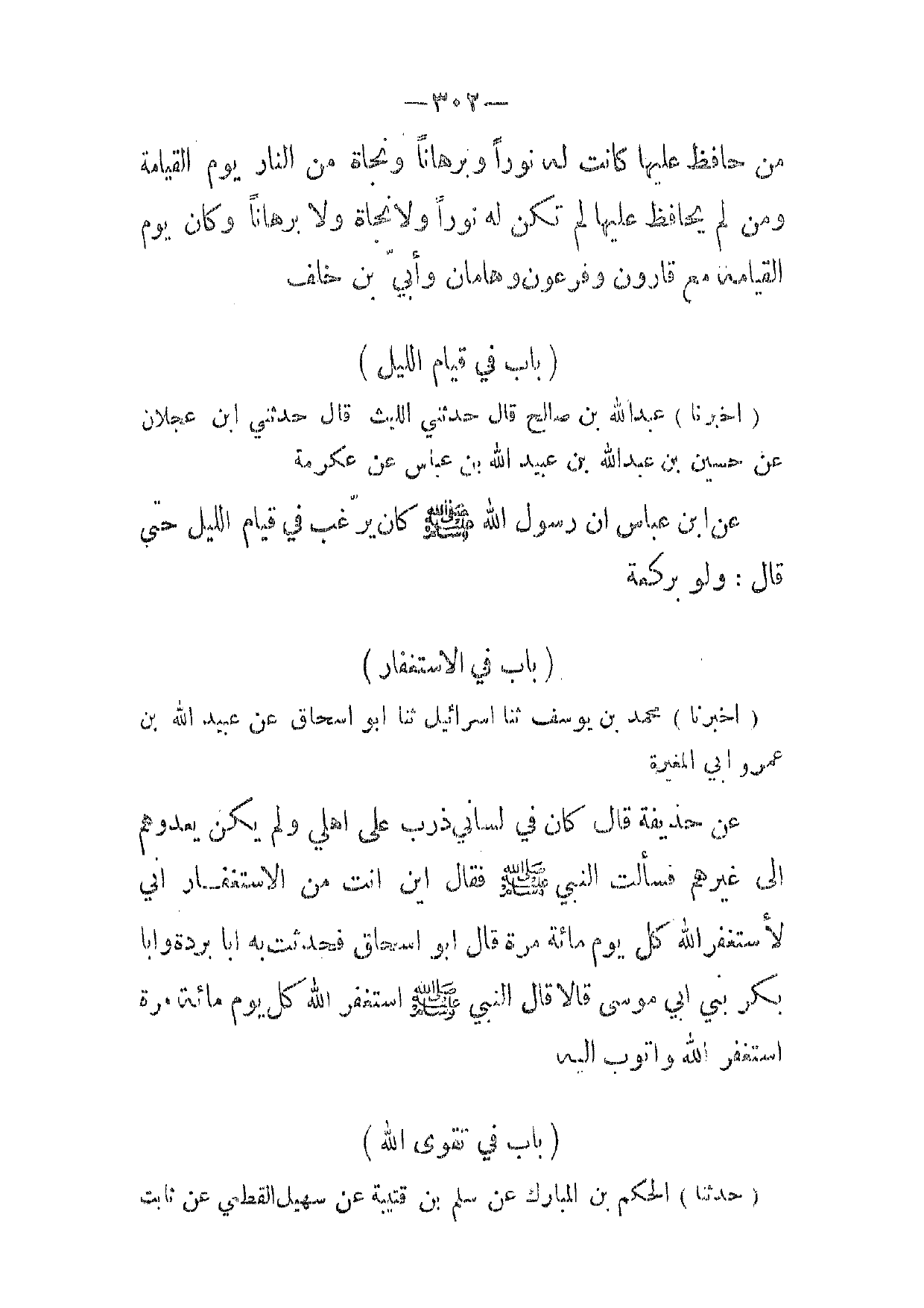[ 302 ] من حافظ عليها كانت له نورا وبرهانا ونجاة من النار يوم القيامة ومن لم يحافظ عليها لم تكن له نورا ولا نجاة ولا برهانا وكان يوم القيامة مع قارون وفرعون وهامان وأبي بن خلف