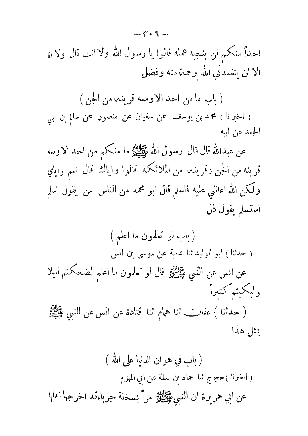 [ 306 ] احدا منكم لن ينجيه عمله قالوا يا رسول الله ولا انت قال ولا انا الا ان يتغمدني الله برحمة منه وفضل