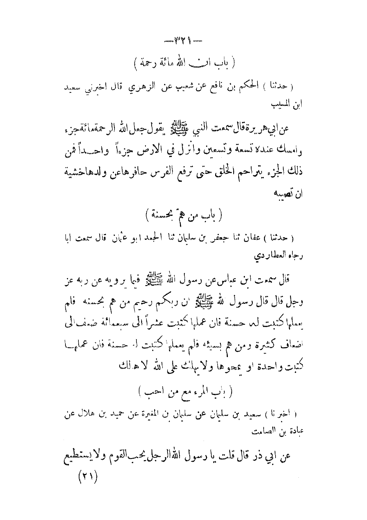 (أخبرنا) سعيد بن سليمان عن سليمان بن المغيرة عن حميد بن هلال عن عبادة بن الصامت عن ابي ذر قال قلت يا رسول الله الرجل يحب القوم ولا يستطيع (21)