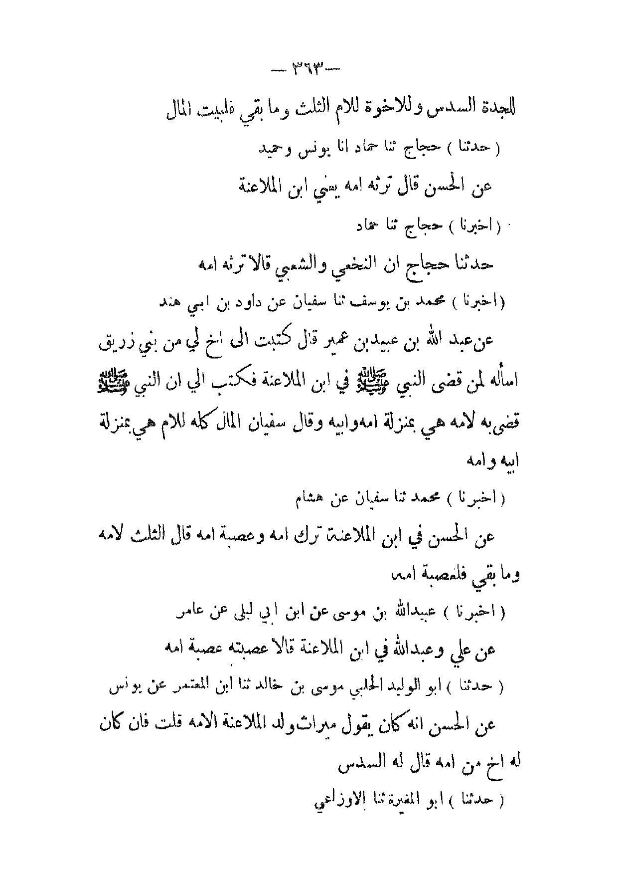 (أخبرنا) محمد ثنا سفيان عن هشام عن الحسن في ابن الملاعنة ترك امه وعصبة امه قال الثلث لامه وما بقي فلعصبة امه