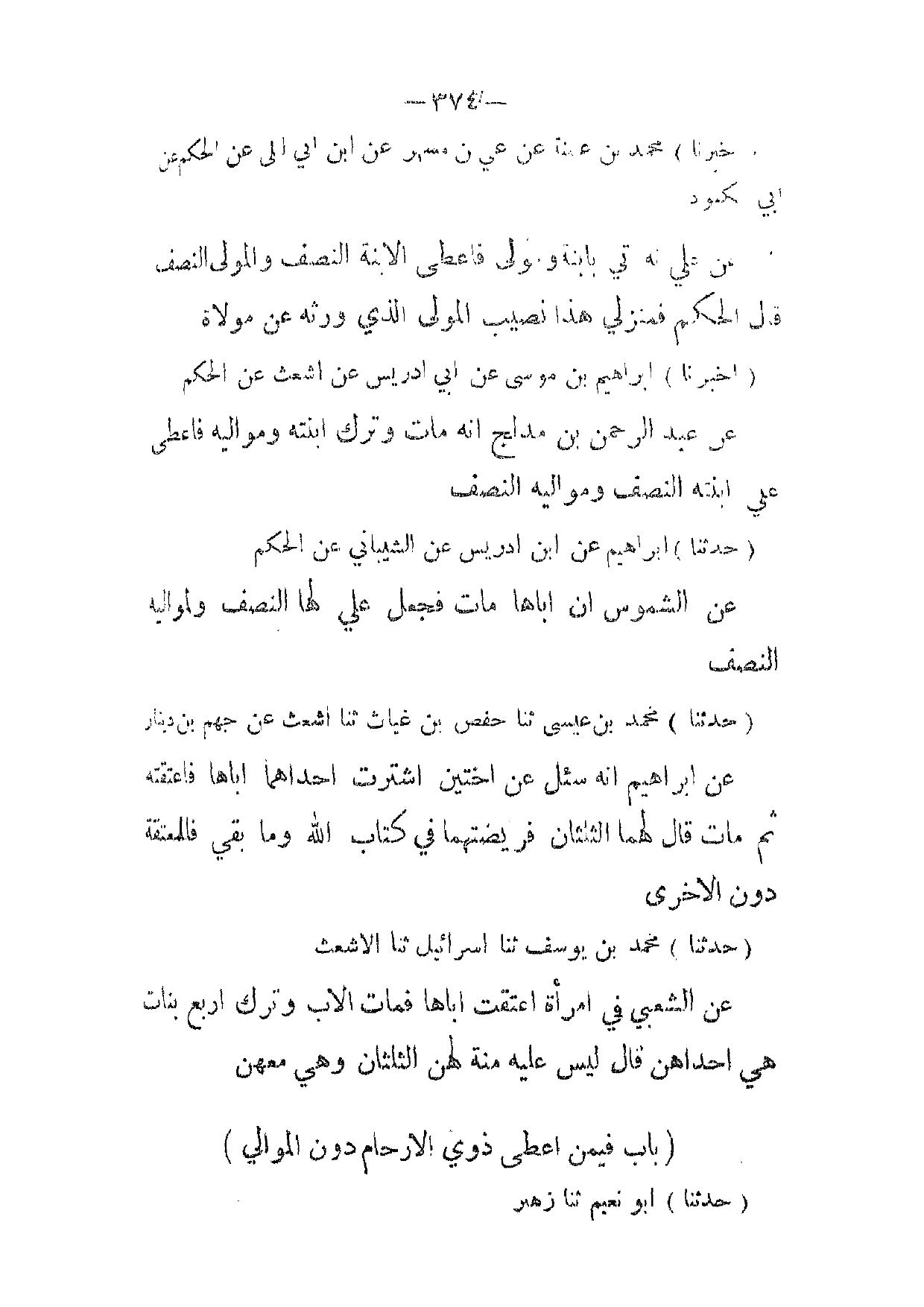 (حدثنا) ابراهيم عن ابن ادريس عن الشيباني عن الحكم عن الشموس ان اباها مات فجعل علي لها النصف ولمواليه النصف