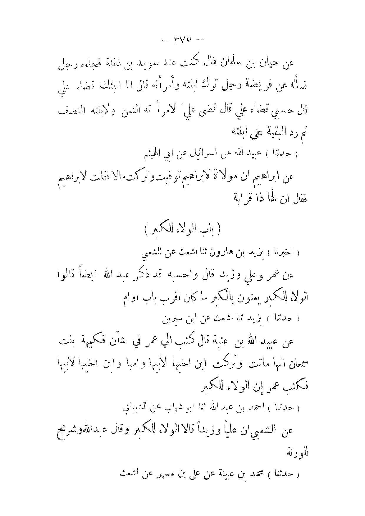 (حدثنا) عبيدالله عن اسرائيل عن ابي الهيثم عن ابراهيم ان مولاة لا براهيم توفيت وتركت مالا فقلت لابراهيم فقال ان لها ذا قرابة