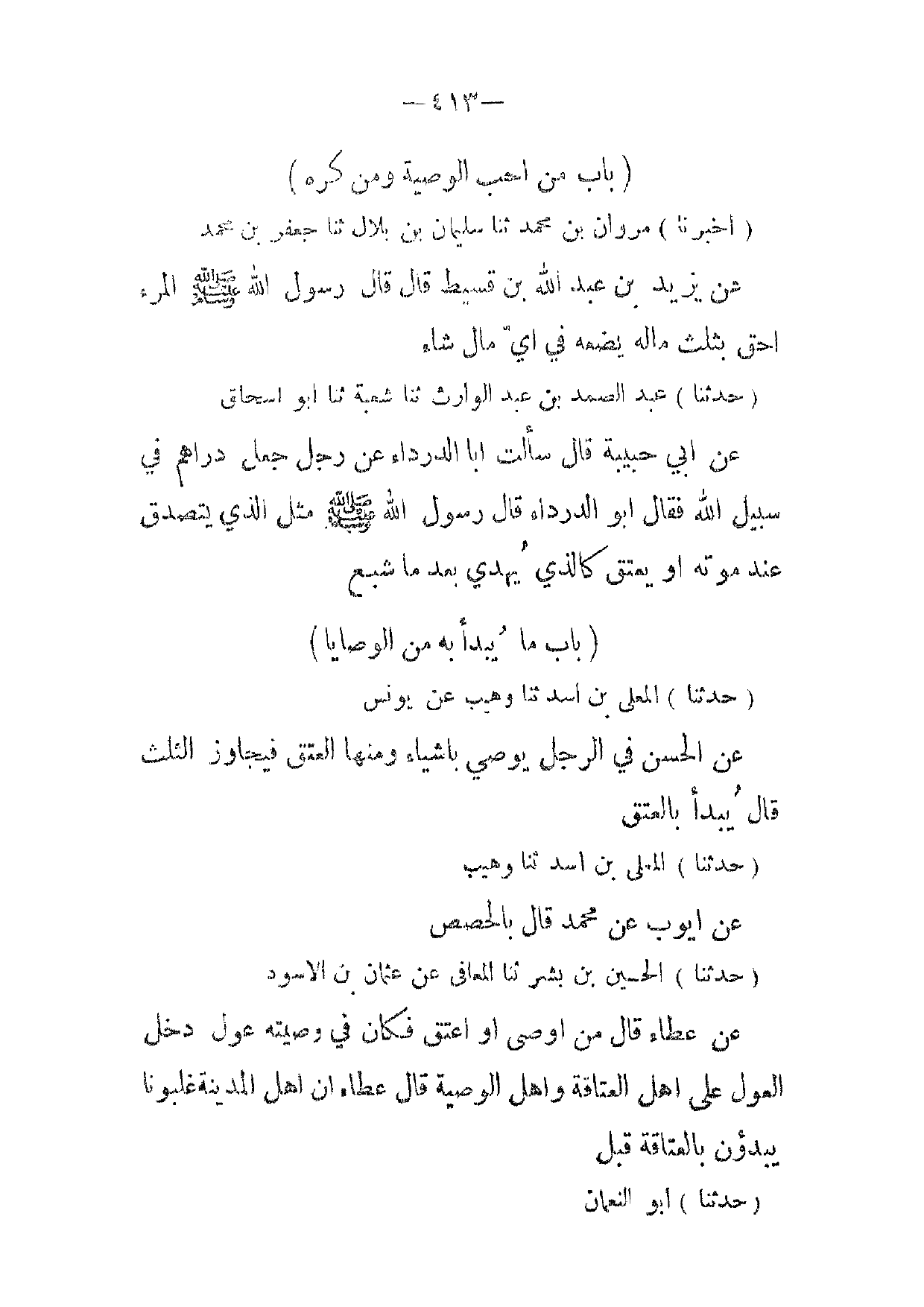 (حدثنا) المعلى بن اسد ثنا وهيب عن يونس عن الحسن في الرجل يوصي باشياء ومنها العتق فيجاوز الثلث قال يبدأ بالعتق