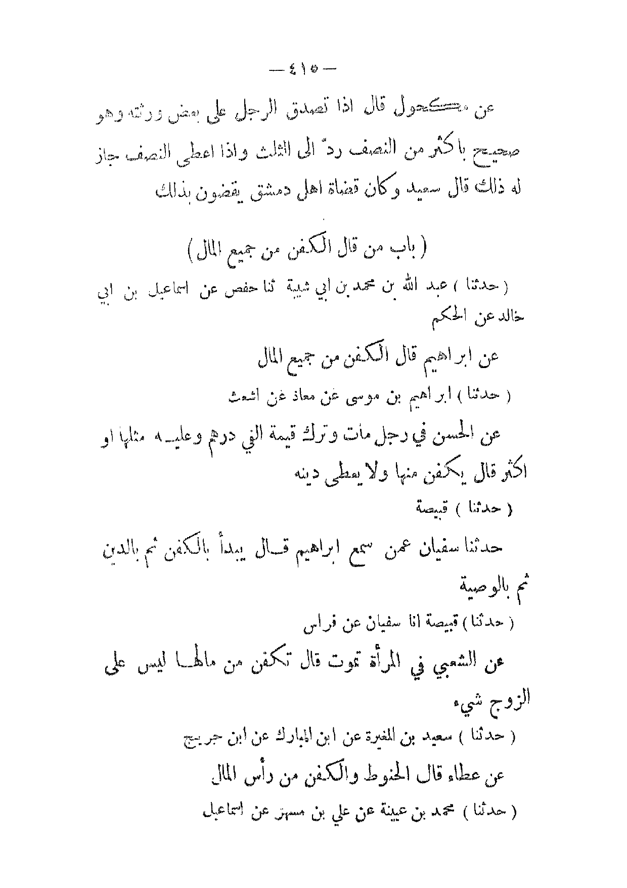 (حدثنا) سعيد بن المغيرة عن ابن المبارك عن ابن جريج عن عطاء قال الحنوط والكفن من رأس المال
