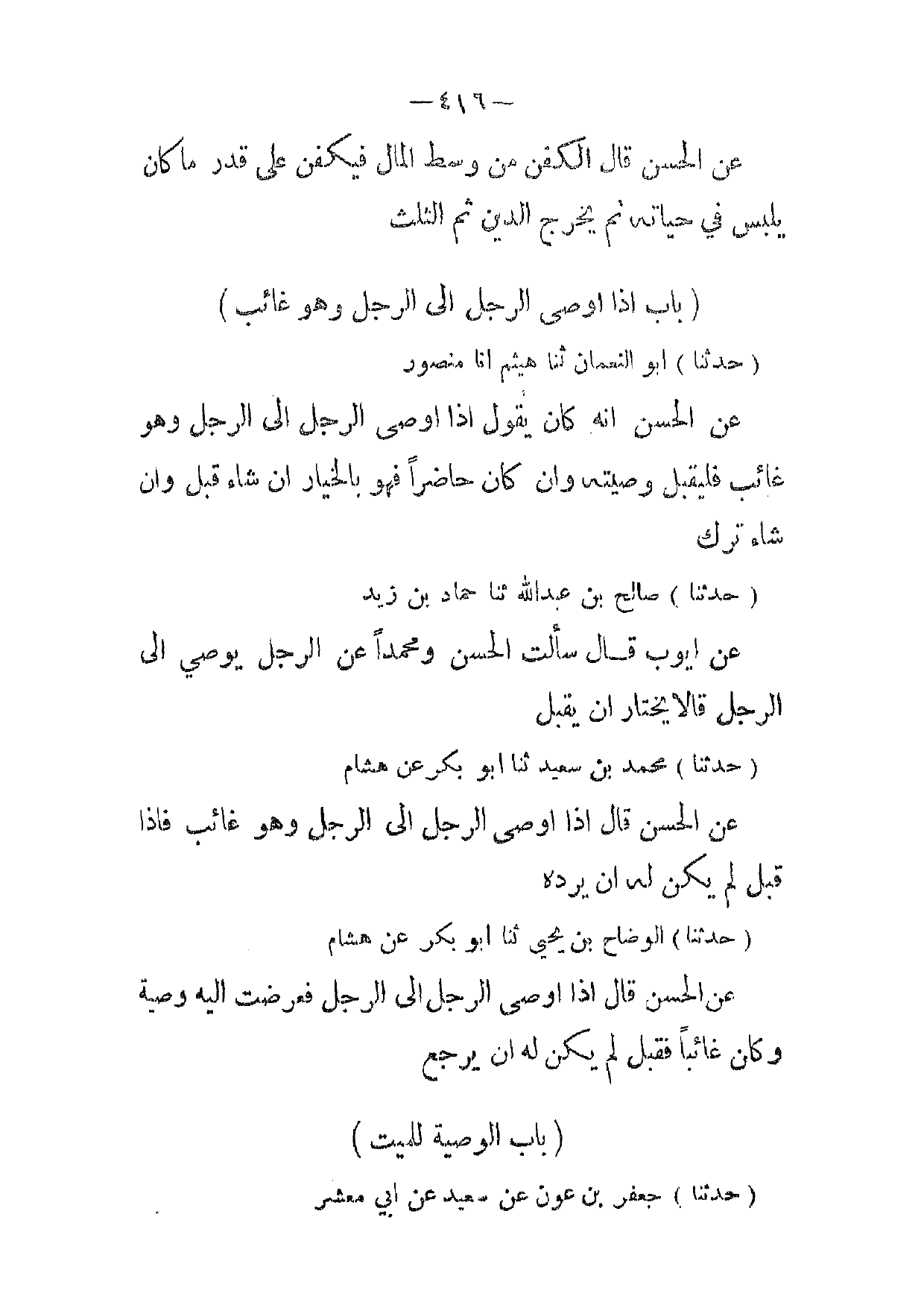 (حدثنا) صالح بن عبد الله ثنا حماد بن زيد عن ايوب قال سألت الحسن ومحمدا عن الرجل يوصي إلى الرجل قالا يختار ان يقبل