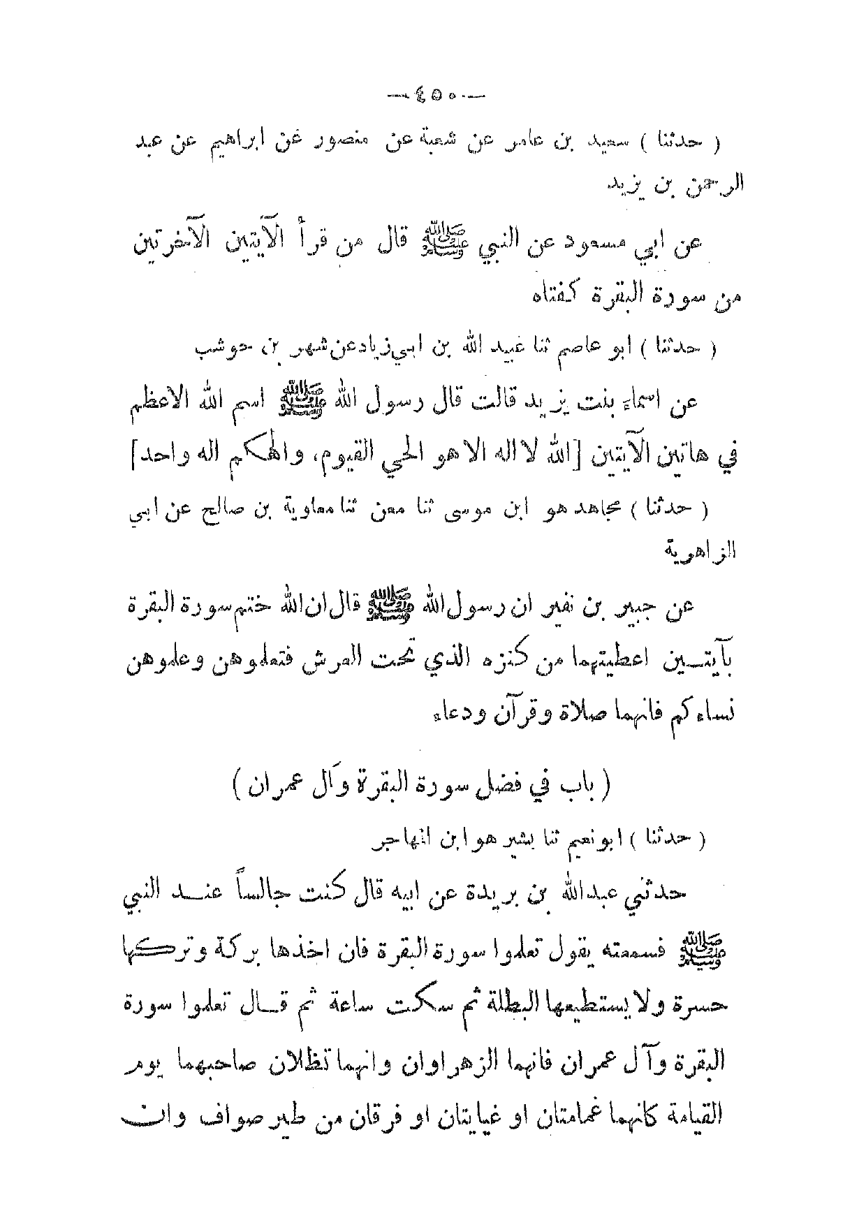 (باب في فضل سورة البقرة وال عمران)