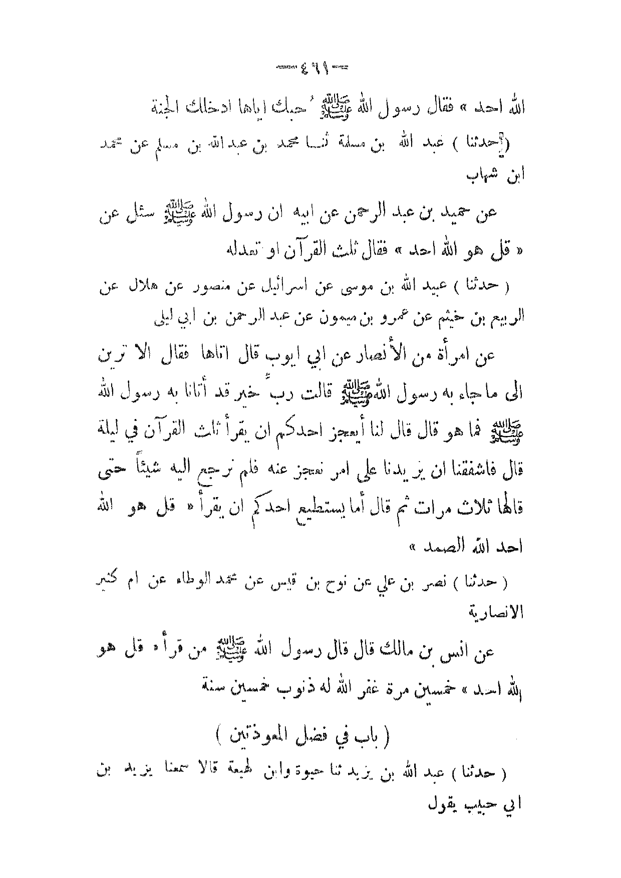 [ 461 ] الله احد " فقال رسول الله صلى الله عليه وسلم حبك اياها ادخلك الجنة