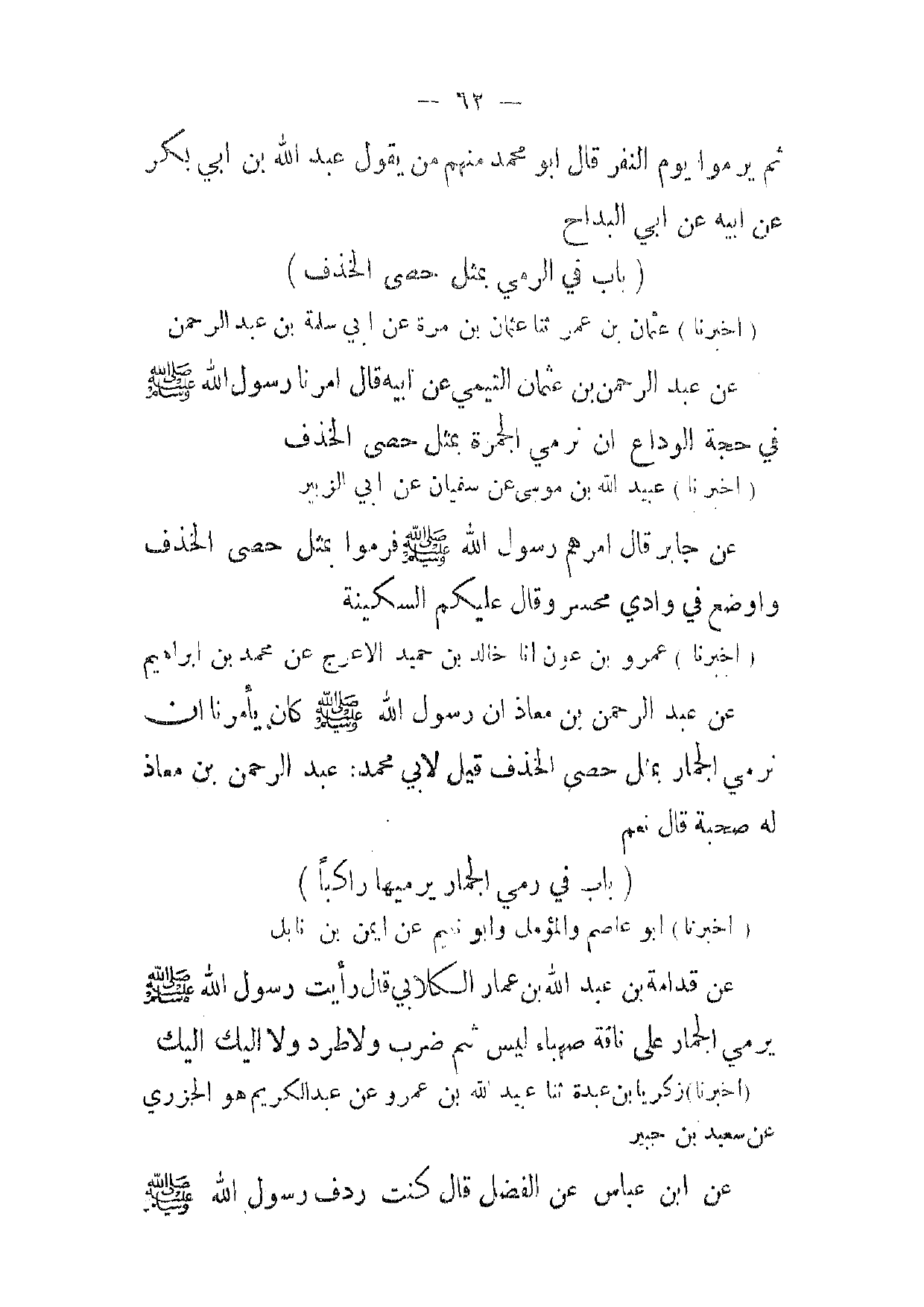 [ 62 ] ثم يرموا يوم النفر قال أبو محمد منهم من يقول عبد الله بن ابي بكر عن ابيه عن ابي البداح