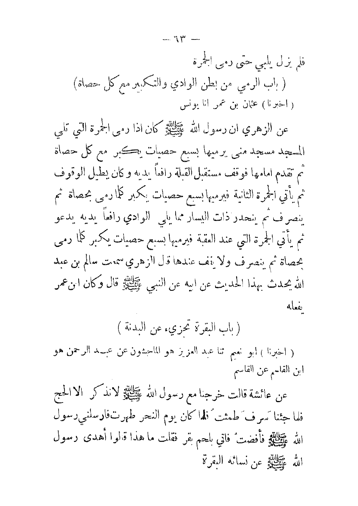 [ 63 ] فلم يزل يلبي حتى رمى الجمرة