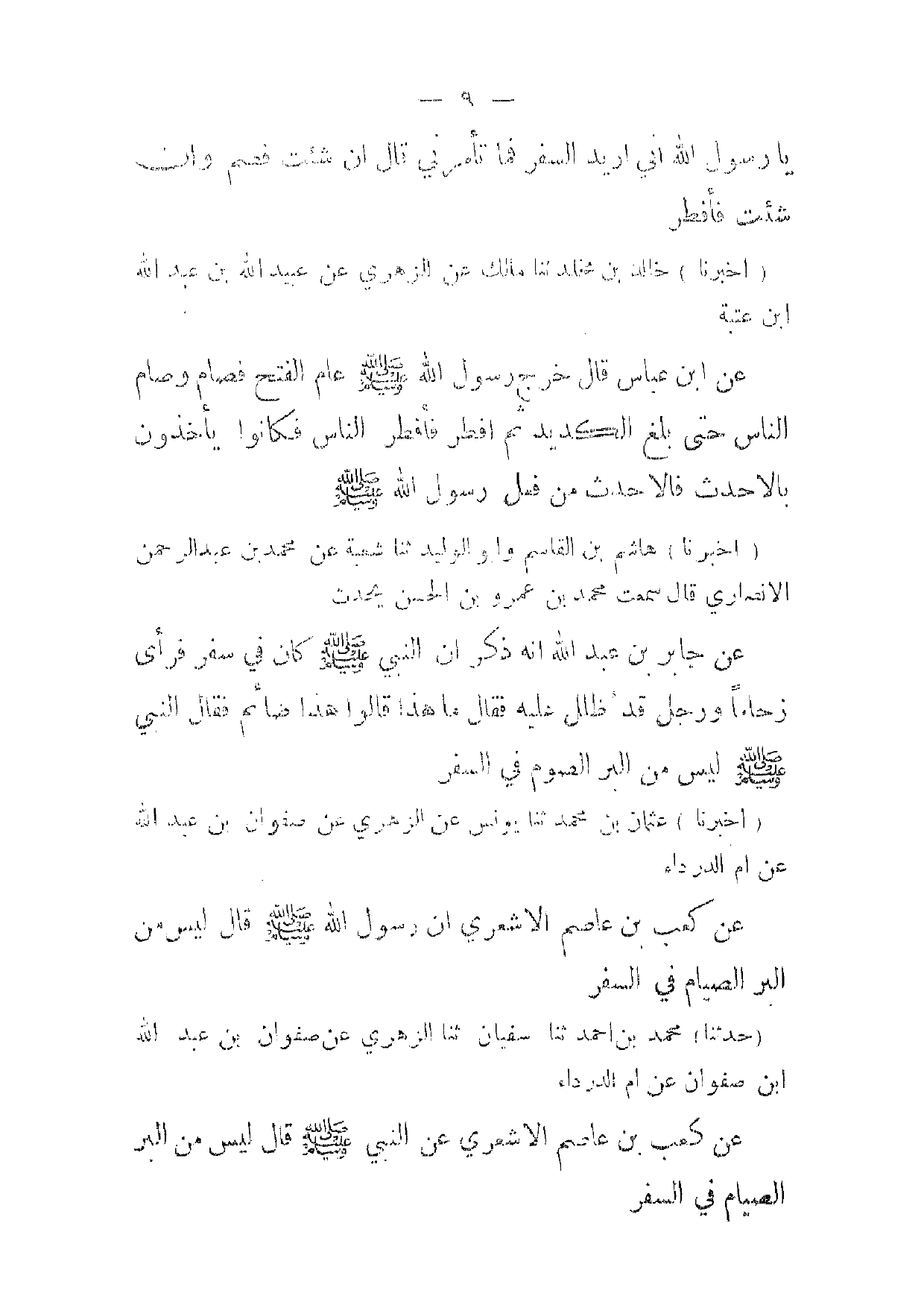[ 9 ] يا رسول الله انى اريد السفر فما تأمرني قال ان شئت فصم وان شئت فأفطر