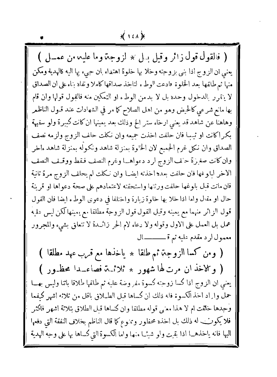 (ومن كسا الزوجة ثم طلقا ... يأخذها مع قرب عهد مطلقا)