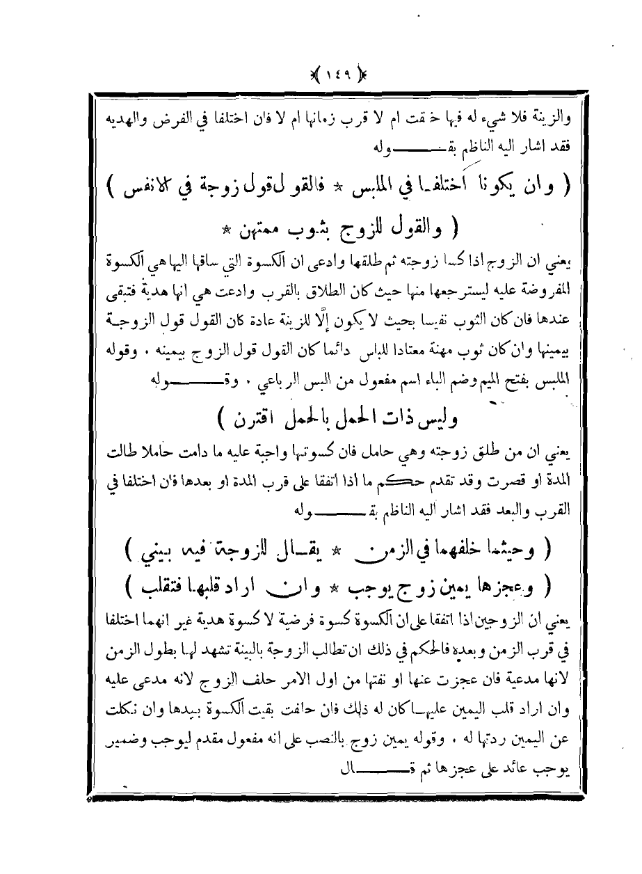 (وإن يكونا اختلفا في الملبس ... فالقول قول زوجة في الأنفس)