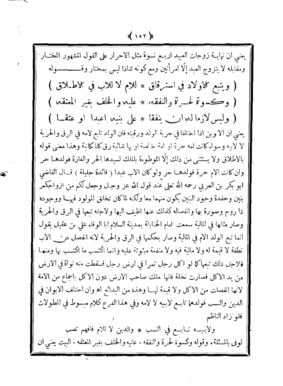 (ويتبع الأولاد في استرقاق ... للأم لا للأب في الإطلاق)