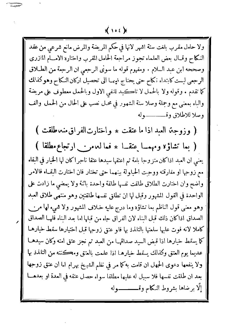 (بما تشاؤه ومهما عتقا ... فما له من ارتجاع مطلقا)