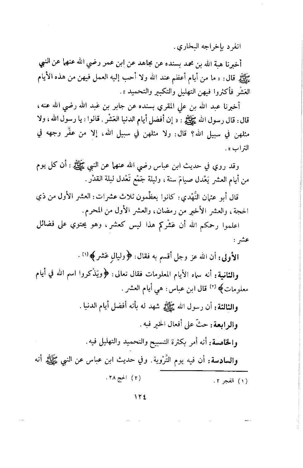 اعْلَمُوا رَحِمَكُمُ اللَّهُ أَنَّ عَشْرَكُمْ هَذَا لَيْسَ كَعَشْرٍ وَهُوَ يَحْتِوي عَلَى فَضَائِلَ عَشْرٍ: