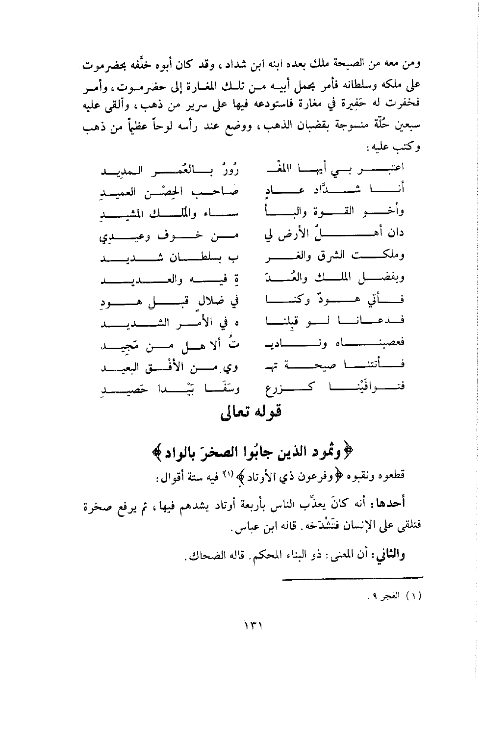 (أنا شداد عَادٍ ... صَاحِبُ الْحِصْنِ الْعَمِيدِ)