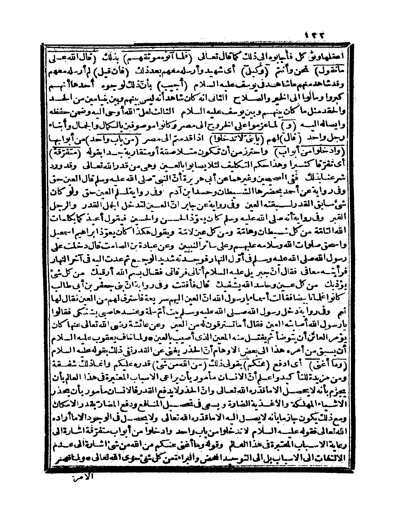 وقد ورد شرعنا بذلك ففي الصحيحين وغيرهما عن أبي هريرة أنّ النبيّ صلى الله عليه وسلم قال: «العين حق» . وفي رواية عن أحمد «يحضرها الشيطان وحسد ابن آدم» . وفي رواية لمسلم: «العين حق ولو كان شيء سابق القدر لسبقته العين» . وفي رواية عن جابر: «إنّ العين لتدخل الجمل القدر والرجل القبر» ، وفي رواية أنه صلى الله عليه وسلم كان يعوّذ الحسن والحسين فيقول: «أعيذكما بكلمات الله التامّة من كل شيطان وهامّة ومن كل عين لامّة» . ويقول: «هكذا كان يعوّذ إبراهيم إسماعيل وإسحاق» صلوات الله وسلامه عليهم وعلى سائر النبيين، وعن عبادة بن الصامت قال: دخلت على رسول الله صلى الله عليه وسلم في أوّل النهار فوجدته شديد الوجع، ثم عدت إليه في آخر النهار فرأيته معافى فقال: «إنّ جبريل عليه السلام أتاني فرقاني فقال: بسم الله أرقيك من كل شيء يؤذيك من كل عين وحاسد الله يشفيك، قال فأفقت» وفي رواية أنّ بني جعفر بن أبي طالب كانوا غلماناً بيضاً فقالت أسماء: يا رسول الله، إنّ العين إليهم سريعة فاسترق لهم من العين؟ فقال لها: «نعم» . وفي رواية دخل رسول الله صلى الله عليه وسلم بيت أمّ سلمة وعندها صبي يشتكي فقالوا: يا رسول الله أصابته العين. فقال: «أما تسترقون له من العين» . وعن عائشة رضي الله تعالى عنها «كان يؤمر العائن أن يتوضأ ثم يغتسل منه المعين الذي أصيب بالعين» .
