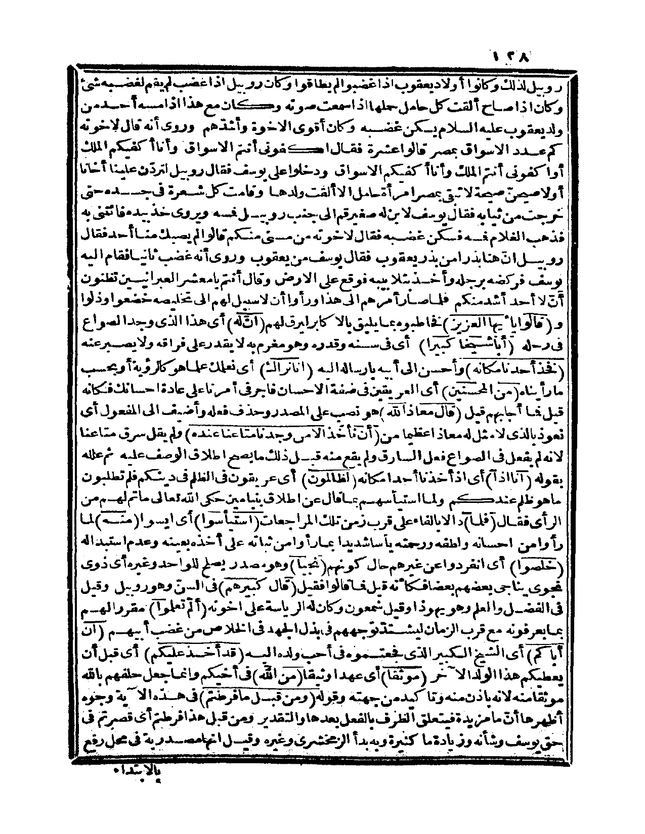 قال ابن الأنباري: وليس في هذه الأفعال كلها سرقة، ولكنها تشبهها فعيروه بها عند الغضب، وقيل: إنهم كذبوا عليه وبهتوه، وكانت قلوبهم مملوءة من الغضب على يوسف بعد تلك الوقائع وبعد انقضاء المدّة الطويلة. قال الرازي: وهذه الواقعة تدل على أنّ قلب الحاسد لا يطمئن من الغل البتة. {فأسرها يوسف في نفسه ولم يبدها} ، أي: يظهرها {لهم} والضمير للكلمة التي هي قوله: {قال} ، أي: في نفسه {أنتم شرّ مكاناً} ، أي: من يوسف وأخيه، أي: لسرقتكم أخاكم من أبيكم وظلمكم له، وقيل: الضمير يرجع إلى الكلمة التي قالوها في حقه، وهي قولهم: {فقد سرق أخ له من قبل} وعلى هذا يكون المعنى: فأسر يوسف جواب الكلمة التي قالوها في حقه {والله أعلم} منكم {بما تصفون} ، أي: تقولون، وأنه ليس كما قلتم، قال أصحاب الأخبار والسير: إنّ يوسف عليه السلام لما استخرج الصاع من رحل بنيامين نقره وأدناه إلى أذنه ثم قال: إنّ صاعي هذا يخبرني أنكم كنتم اثني عشر رجلاً لأب واحد وإنكم انطلقتم بأخ لكم من أبيكم فبعتموه فقال بنيامين: أيها الملك إنّ صاعك يخبرك من جعله في رحلي، ثم نقره وأدناه من أذنه، فقال: إنّ صاعي غضبان وهو يقول: كيف تسألوني عن صاحبي وقد رؤيت مع من كنت؟ قالوا: فغضب روبيل لذلك، وكانوا أولاد يعقوب إذا غضبوا لم يطاقوا، وكان روبيل إذا غضب لم يقم لغضبه شيء، وكان إذا صاح ألقت كل حامل حملها إذا سمعت صوته، وكان مع هذا إذا مسه أحد من ولد يعقوب عليه السلام يسكن غضبه، وكان أقوى الأخوة وأشدّهم، وروي أنه قال لإخوته: كم عدد الأسواق بمصر؟ قالوا: عشرة. فقال: اكفوني أنتم الأسواق، وأنا أكفيكم الملك أو اكفوني أنتم الملك وأنا أكفيكم الأسواق، ودخلوا على يوسف فقال روبيل: لتردّن علينا أخانا أو لأصيحنّ صيحة لا تبقي بمصر امرأة حامل إلا ألقت ولدها، وقامت كل شعرة في جسده حتى خرجت من ثيابه، فقال يوسف لابن له صغير: قم إلى جنب روبيل فمسه، ويروى خذ بيده فائتني به،