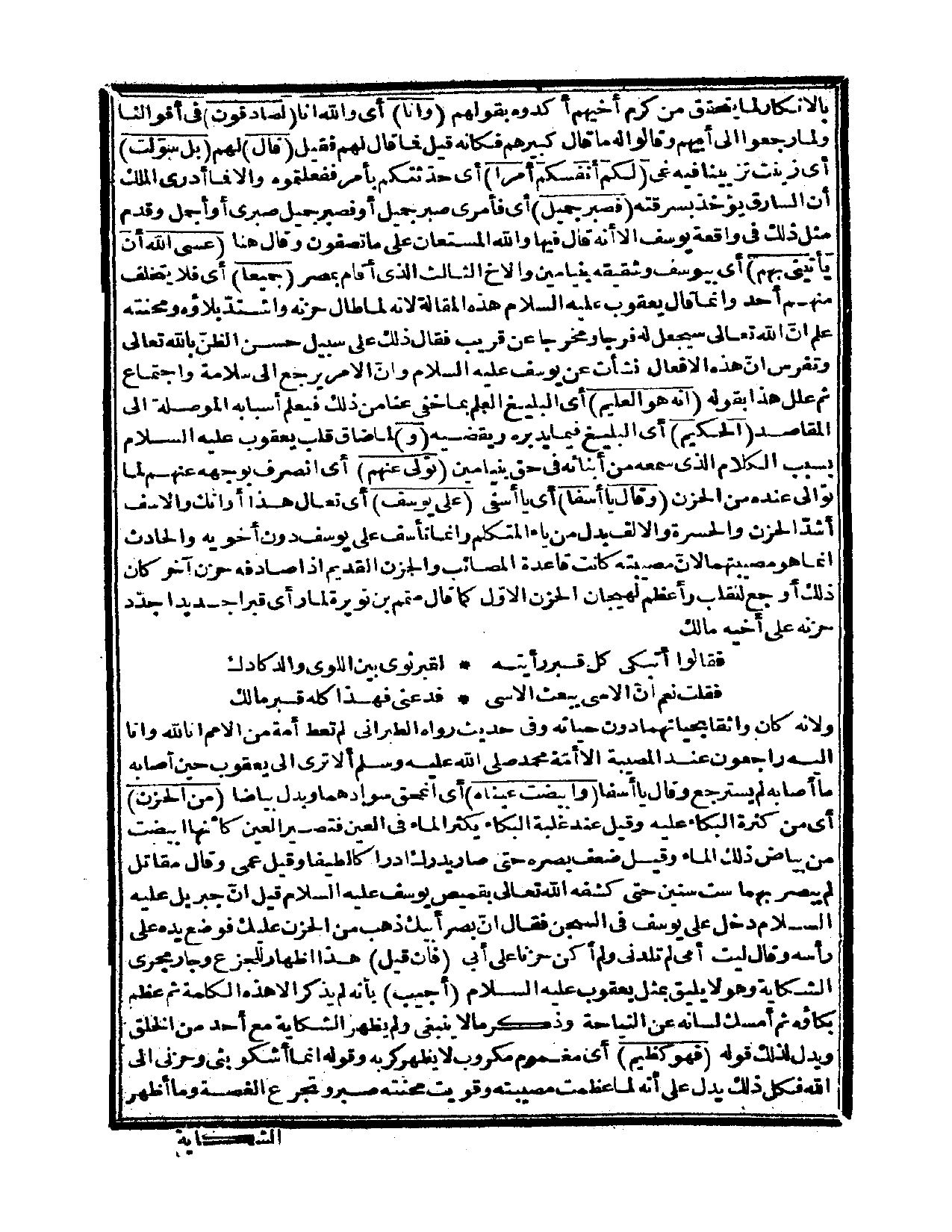 {قال} لهم {بل سوّلت} ، أي: زينت تزييناً فيه غي {لكم أنفسكم أمراً} ، أي: حدّثتكم بأمر ففعلتموه، وإلا فما أدرى الملك أن السارق يؤخذ بسرقته {فصبر جميل} ، أي: فأمري صبر جميل، أو فصبر جميل صبري، أو أجمل، وقدم مثل ذلك في واقعة يوسف إلا أنه قال فيها: {والله المستعان على ما تصفون} (يوسف، 18) وقال هنا {عسى الله أن يأتيني بهم} ، أي: بيوسف وشقيقه بنيامين والأخ الثالث الذي أقام بمصر {جميعاً} ، أي: فلا يتخلف منهم أحد، وإنما قال يعقوب عليه السلام هذه المقالة؛ لأنه لما طال حزنه واشتدّ بلاؤه ومحنته علم أن الله تعالى سيجعل له فرجاً ومخرجاً عن قريب، فقال ذلك على سبيل حسن الظن بالله تعالى وتفرس أن هذه الأفعال نشأت عن يوسف عليه السلام، وأن الأمر يرجع إلى سلامة واجتماع، ثم علل هذا بقوله: {إنه هو العليم} ، أي: البليغ العلم بما خفي عنا من ذلك فيعلم أسبابه الموصلة إلى المقاصد {الحكيم} ، أي: البليغ فيما يدبره ويقضيه.