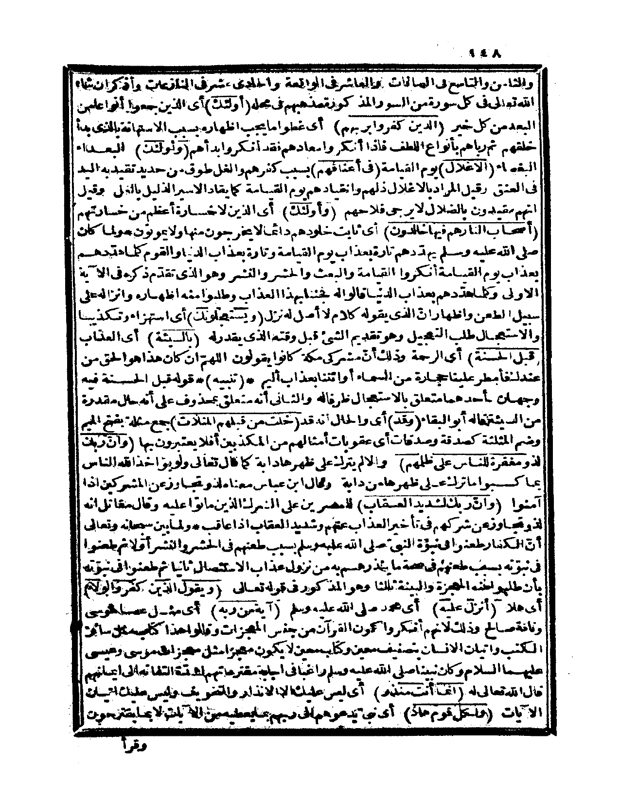 {أولئك} ، أي: الذين جمعوا أنواعاً من البعد من كل خير {الذين كفروا بربهم} ، أي: غطوا ما يجب إظهاره بسبب الاستهانة بالذي بدأ خلقهم، ثم رباهم بأنواع اللطف، فإذا أنكروا معادهم فقد أنكروا بدأهم {وأولئك} البعداء البغضاء {الأغلال} يوم القيامة {في أعناقهم} بسبب كفرهم، والغل: طوق من حديد تقيد به اليد في العنق، وقيل: المراد بالأغلال ذلهم وانقيادهم يوم القيامة كما يقاد الأسير الذليل بالغل، وقيل: إنهم مقيدون بالضلال لا يرجى فلاحهم. {وأولئك} ، أي: الذين لا خسارة أعظم من خسارتهم {أصحاب النار هم فيها خالدون} ، أي: ثابت خلودهم دائماً لا يخرجون منها ولا يموتون. ولما كان صلى الله عليه وسلم يهدّدهم تارة بعذاب يوم القيامة وتارة بعذاب الدنيا، والقوم كلما هدّدهم بعذاب يوم القيامة أنكروا القيامة والبعث والحشر والنشر، وهو الذي تقدّم ذكره في الآية الأولى، وكلما هدّدهم بعذاب الدنيا قالوا له: فجئنا بهذا العذاب، وطلبوا منه إظهاره وإنزاله على سبيل الطعن وإظهار أنّ الذي يقول كلام لا أصل له نزل: