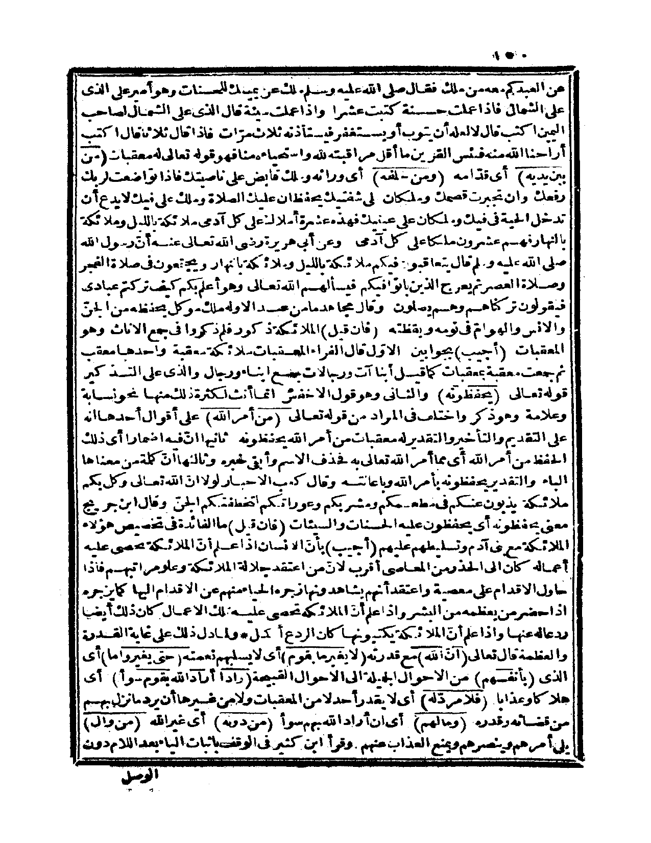 عن العبد كم معه من ملك فقال صلى الله عليه وسلم «ملك عن يمينك للحسنات وهو أمير على الذي على الشمال فإذا عملت حسنة كتبت عشراً وإذا عملت سيئة قال الذي على الشمال لصاحب اليمين: اكتب قال: لا لعله أن يتوب أو يستغفر فيستأذنه ثلاث مرات فإذا قال ثلاثاً قال اكتب أراحنا الله منه. فبئس القرين ما أقل مراقبته لله واستحيائه منا فهو قوله تعالى {له معقبات} {من بين يديه} ، أي: قدّامه {ومن خلفه} ، أي: ورائه، وملك قابض على ناصيتك فإذا تواضعت لربك رفعك، وإن تجبرت قصمك وملكان على شفتيك يحفظان عليك الصلاة، وملك على فيك، لا يدع أن تدخل الحية في فيك وملكان على عينيك فهذه عشرة أملاك على كل أدمي» ملائكة بالليل وملائكة بالنهار فهم عشرون ملكاً على كل آدمي.