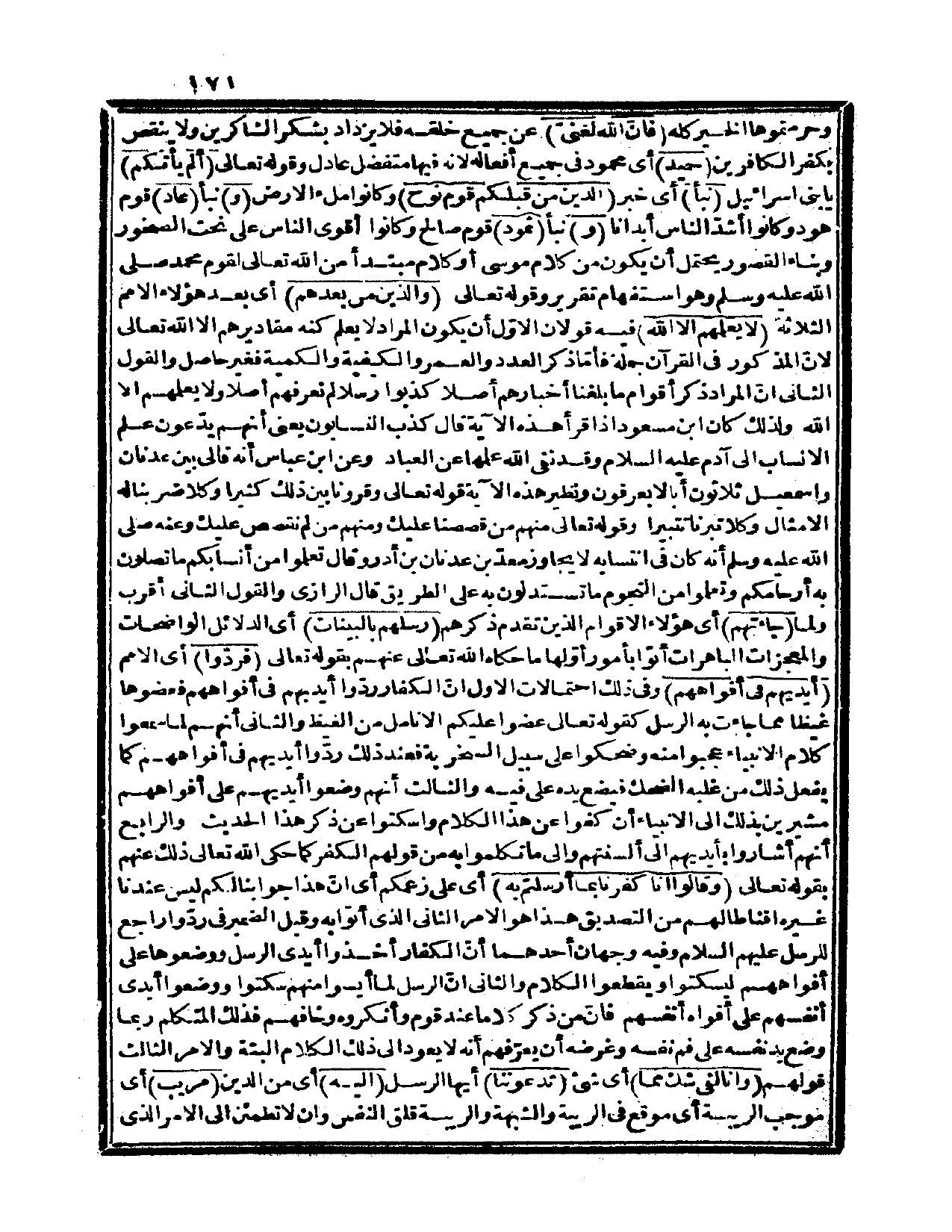 {ألم يأتكم} يا بني اسرائيل {نبأ} ، أي: خبر {الذين من قبلكم قوم نوح} وكانوا ملء الأرض {و} نبأ {عاد} قوم هود وكانوا أشد الناس أبداناً {و} نبأ {ثمود} قوم صالح وكانوا أقوى الناس على نحت الصخور وبناء القصور يحتمل أن يكون من كلام موسى، أو كلام مبتدأ من الله تعالى لقوم محمد صلى الله عليه وسلم وهو استفهام تقرير وقوله تعالى: {والذين من بعدهم} ، أي: بعد هؤلاء الأمم الثلاثة {لايعلمهم إلا الله} فيه قولان؛ الأول أن يكون المراد لا يعلم كنه مقاديرهم إلا الله تعالى؛ لأن المذكور في القرآن جملة، فأما ذكر العدد والعمر والكيفية والكمية فغير حاصل، والقول الثاني: إنّ المراد ذكر أقوام ما بلغنا أخبارهم أصلاً كذبوا رسلاً لم نعرفهم أصلاً ولا يعلمهم إلا الله، ولذلك كان ابن مسعود إذا قرأ هذه الآية قال: كذب النسابون يعني أنهم يدّعون علم الأنساب إلى آدم عليه السلام، وقد نفى الله علمها عن العباد. وعن ابن عباس أنه قال بين عدنان وإسماعيل ثلاثون أباً لا يعرفون، ونظير هذه الآية قوله تعالى: {وقروناً بين ذلك كثيراً وكلاً ضربنا له الأمثال وكلاً تبرنا تتبيراً} (الفرقان: 38، 39) وقوله تعالى: {منهم من قصصنا عليك ومنهم من لم نقصص عليك} (غافر، 78) . وعنه صلى الله عليه وسلم أنه كان في انتسابه لا يجاوز معدّ بن عدنان بن أدر وقال: «تعلموا من أنسابكم ما تصلون به أرحامكم وتعلموا من النجوم ما تستدلون به على الطريق» . قال الرازي: والقول الثاني أقرب. ولما {جاءتهم} ، أي: هؤلاء الأقوام الذين تقدم ذكرهم {رسلهم بالبينات} ، أي: الدلائل الواضحات والمعجزات الباهرات أتوا بأمور أوّلها ما حكاه الله تعالى عنهم بقوله تعالى: {فردّوا} ، أي: الأمم {أيديهم في أفواههم} وفي ذلك احتمالات: الأول: أن الكفار ردّوا أيديهم في أفواههم فعضوها غيظاً مما جاءت به الرسل كقوله تعالى: {عضوا عليكم الأنامل من الغيظ} (آل عمران، 119) .