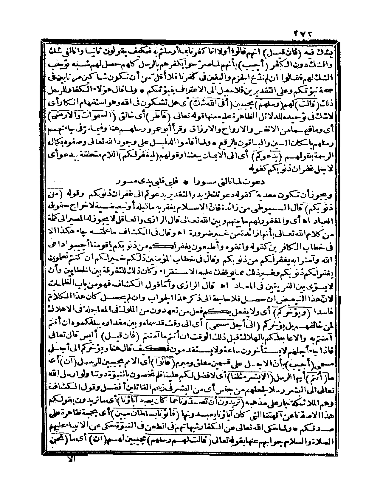 وغيرذلك مما يوقفك عليه الاستقراء، وكان ذلك للتفرقة بين الخطابين، وأن لا يسوّى بين الفريقين في المعاد اه. قال الرازي: وأما قول «الكشاف» فهو من باب الظلمات؛ لأنّ هذا التبعيض إن حصل فلا حاجة إلى ذكر هذا الجواب، وإن لم يحصل كان هذا الكلام فاسداً. {ويؤخركم} ، أي: ولا يفعل بكم فعل من تعهدون من الملوك في المعاجلة في الإهلاك لمن خالفهم بل يؤخركم. {إلى أجل مسمى} ، أي: إلى وقت قد سماه وبين مقداره يبلغكموه إن أنتم آمنتم به، وإلا عاجلكم بالهلاك قبل ذلك الوقت إن أنتم ما آمنتم. فإن قيل: أليس قال تعالى: {فإذا جاء أجلهم لا يستأخرون ساعة ولا يستقدمون} (الأعراف، 34)
