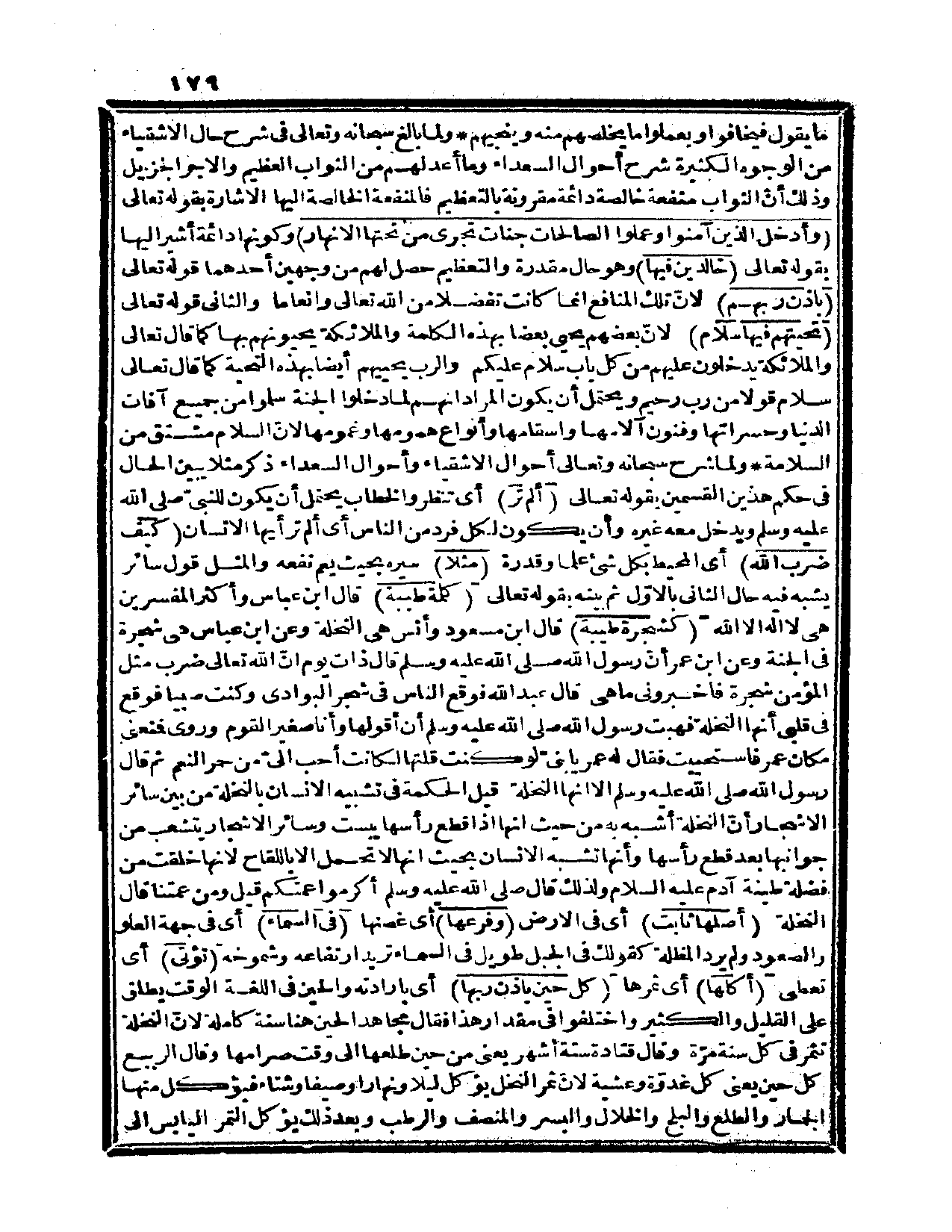 {ألم تر} ، أي: تنظر، والخطاب يحتمل أن يكون للنبيّ صلى الله عليه وسلم ويدخل معه غيره، وأن يكون لكل فرد من الناس، أي: ألم تر أيها الإنسان {كيف ضرب الله} ، أي: المحيط بكل شيء علماً وقدرة {مثلاً} سيره بحيث يعم نفعه، والمثل قول سائر يشبه فيه حال الثاني بالأوّل، ثم بينه بقوله تعالى: {كلمة طيبة} قال ابن عباس وأكثر المفسرين: هي لا إله إلا الله. {كشجرة طيبة} قال ابن مسعود وأنس: هي النخلة. وعن ابن عباس: هي شجرة في الجنة. وعن ابن عمر أنّ رسول الله صلى الله عليه وسلم قال ذات يوم: «إنّ الله تعالى ضرب مثل المؤمن شجرة فأخبروني ما هي؟ قال عبد الله: فوقع الناس في شجر البوادي وكنت صبياً فوقع في قلبي أنها النخلة، فهبت رسول الله صلى الله عليه وسلم أن أقولها وأنا صغير القوم» . وروي: فمنعني مكان عمر فاستحييت فقال له عمر: يا بنيّ لو كنت قلتها لكانت أحب إليّ من حمر النعم، ثم قال رسول الله صلى الله عليه وسلم «ألا إنها النخلة» . قيل: الحكمة في تشبيه الإنسان بالنخلة من بين سائر الأشجار أنّ النخلة أشبه به من حيث إنها إذا قطع رأسها يبست وسائر الأشجار يتشعب من جوانبها بعد قطع رأسها، وأنها تشبه الإنسان بحيث أنها لا تحمل إلا باللقاح؛ لأنها خلقت من فضلة طينة آدم عليه السلام ولذلك قال صلى الله عليه وسلم «أكرموا عمتكم قيل: ومن عمتنا؟ قال: النخلة» . {أصلها ثابت} ، أي: في الأرض {وفرعها} ، أي: غصنها {في السماء} ، أي: في جهة العلو والصعود ولم يرد المظلة كقولك في الجبل: طويل في السماء تريد ارتفاعه وشموخه. {تؤتي} ، أي: تعطي. {أكلها} ، أي: ثمرها