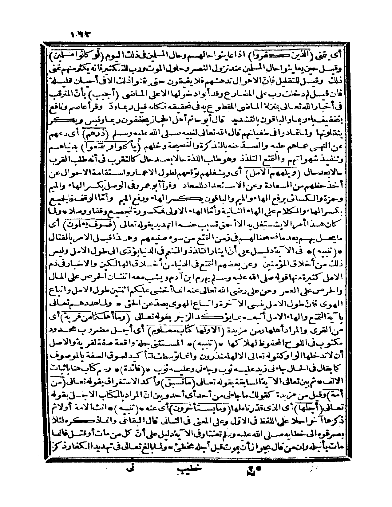 وإنما توسطت لتأكيد لصوق الصفة بالموصوف كما يقال في الحال: جاءني زيد عليه ثوب وجاءني وعليه ثوب. فائدة: رسم كتاب هنا بإثبات الألف. ثم بيّن تعالى الآية السابقة بقوله تعالى: