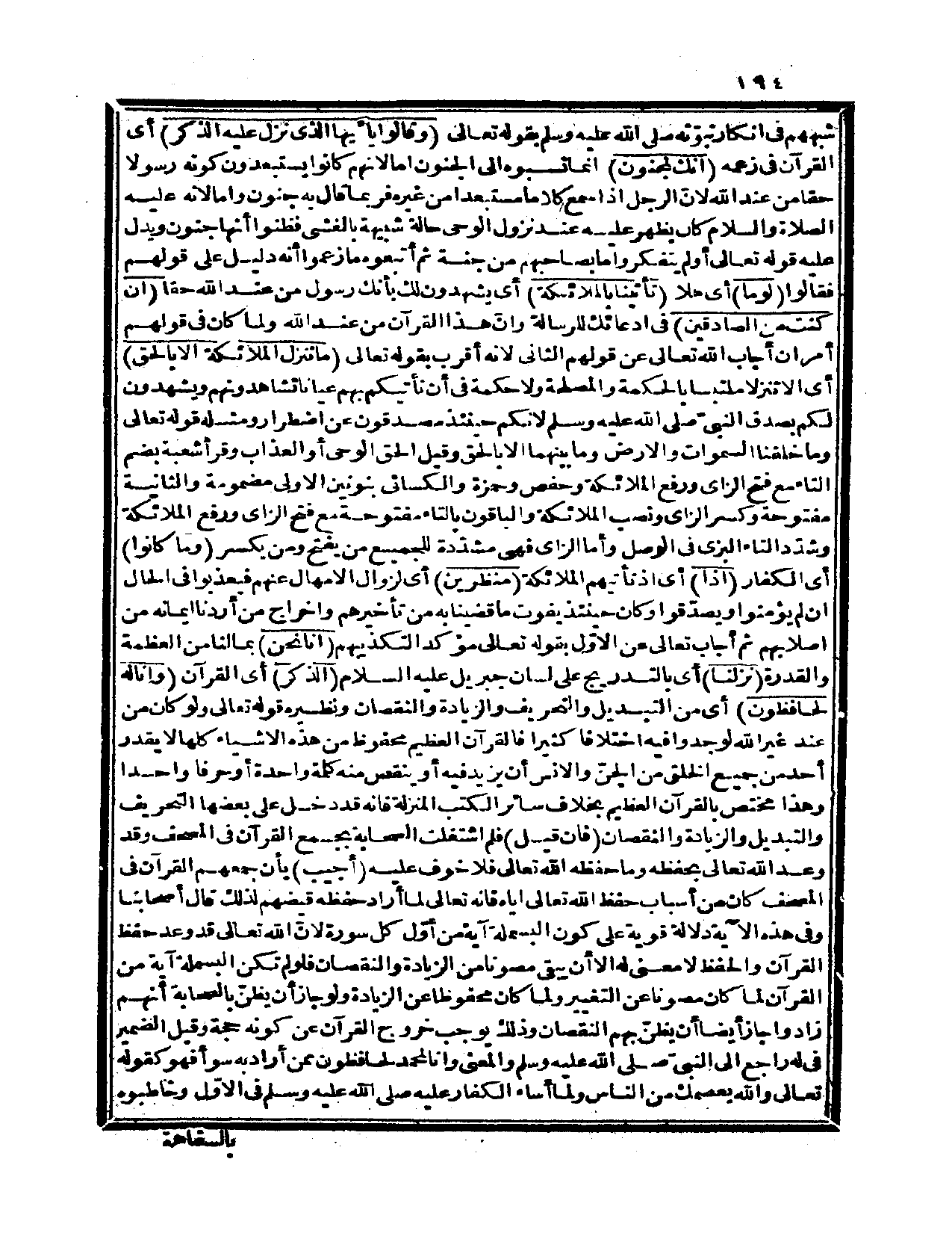 {وقالوا يا أيها الذي نزل عليه الذكر} ، أي: القرآن في زعمه {إنك لمجنون} إنما نسبوه إلى الجنون إما لأنهم كانوا يستبعدون كونه رسولاً حقاً من عند الله لأنّ الرجل إذا سمع كلاماً مستبعداً من غيره فربما قال به جنون، وإما لأنه عليه الصلاة والسلام كان يظهر عليه عند نزول الوحي حالة شبيهة بالغشي فظنوا أنها جنون ويدل عليه قوله تعالى: {أولم يتفكروا ما بصاحبهم من جنة} (الأعراف، 184)