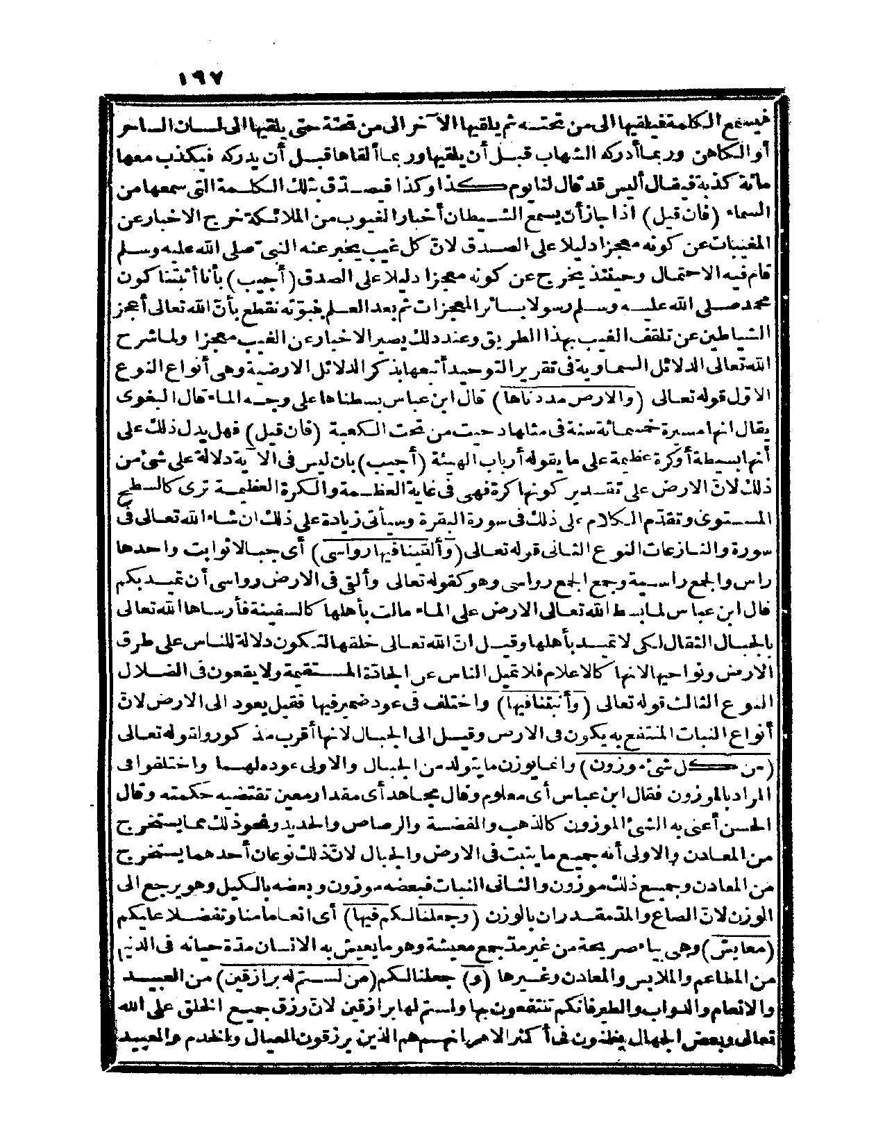 المغيبات عن كونه معجزاً دليلاً على الصدق لأنّ كل غيب يخبر عنه النبيّ صلى الله عليه وسلم قام فيه الاحتمال وحينئذٍ يخرج عن كونه معجزاً دليلاً على الصدق. أجيب: بأنا أثبتنا كون محمد صلى الله عليه وسلم رسولاً بسائر المعجزات ثم بعد العلم بنبوّته نقطع بأنّ الله تعالى أعجز الشياطين عن تلقف الغيب بهذا الطريق وعند ذلك يصير الإخبار عن الغيب معجزاً، ولما شرح الله تعالى الدلائل السماوية في تقرير التوحيد أتبعها بذكر الدلائل الأرضية وهي أنواع؛ النوع الأوّل: قوله تعالى: