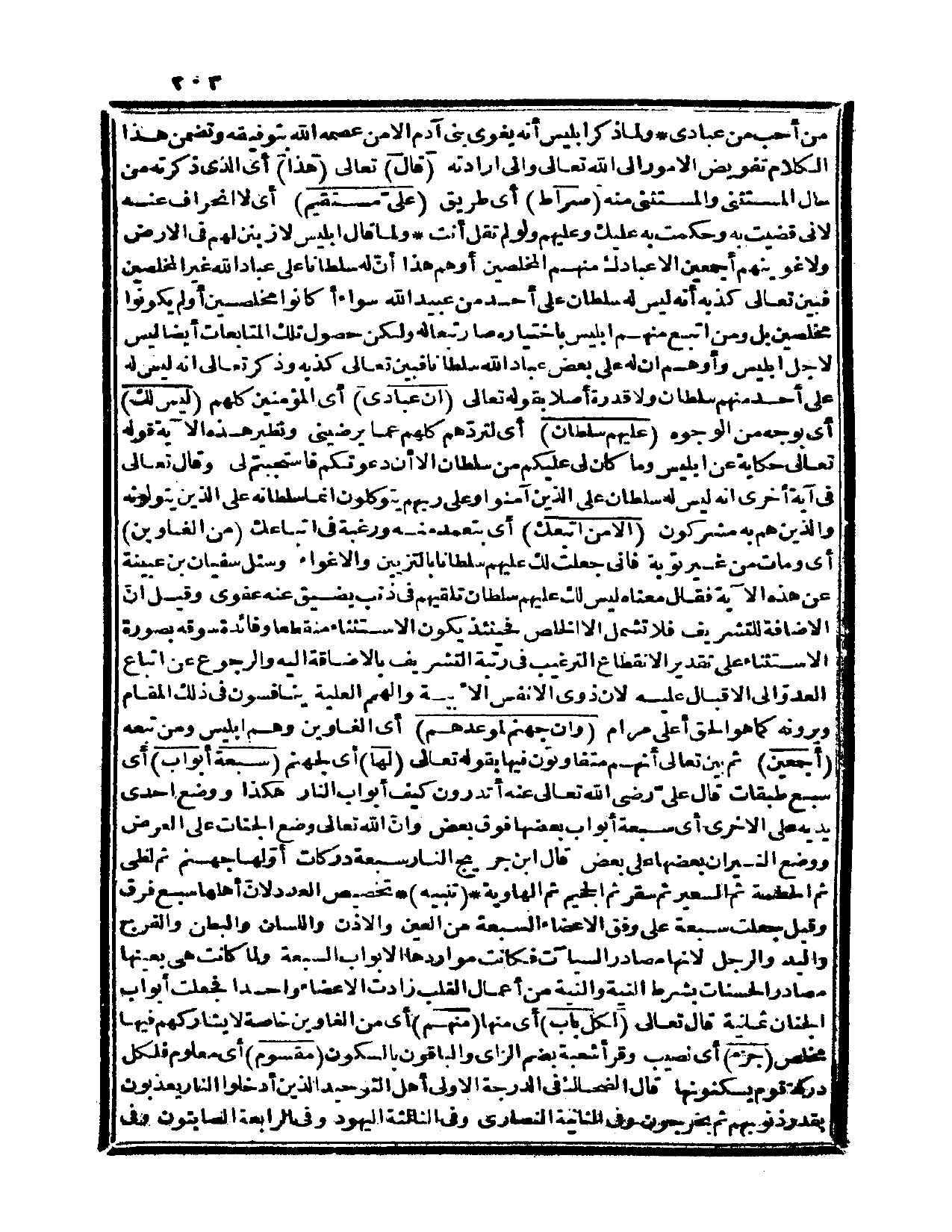 من أحب من عبادي» . ولما ذكر إبليس أنه يغوي بني آدم إلا من عصمه الله بتوفيقه وتضمن هذا الكلام تفويض الأمور إلى الله تعالى وإلى إرادته.