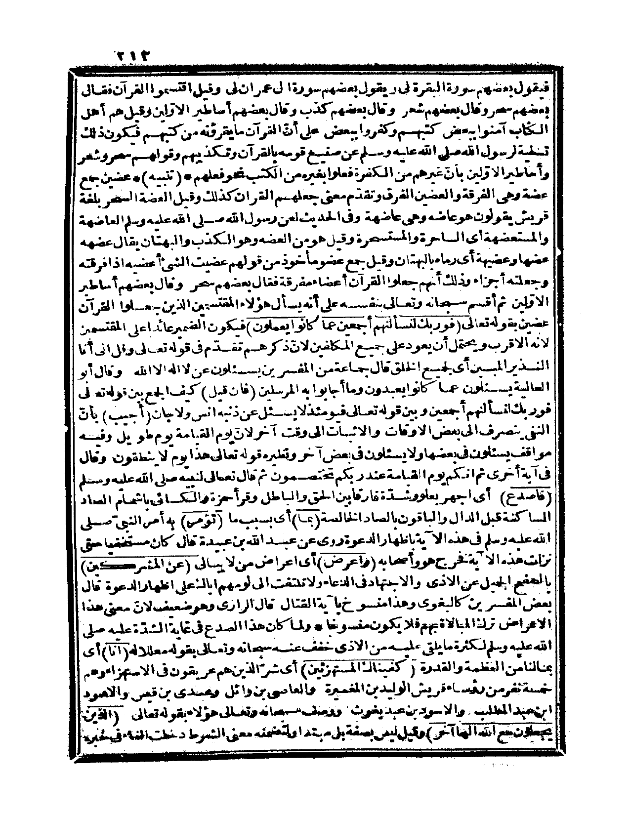 تنبيه: عضين جمع عضة وهي الفرقة والعضين الفرق وتقدّم معنى جعلهم القرآن كذلك وقيل: العضة السحر بلغة قريش يقولون هو عاضه وهي عاضهة. وفي الحديث: «لعن رسول الله صلى الله عليه وسلم العاضهة والمستعضهة» ، أي: الساحرة والمستسحرة وقيل: هو من العضه وهو الكذب والبهتان، يقال: عضهه عضها وعضيهة، أي: رماه بالبهتان وقيل: جمع عضو مأخوذ من قولهم: عضيت الشيء أعضيه إذا فرقته وجعلته أجزاء وذلك أنهم جعلوا القرآن أعضاء مفرقة فقال بعضهم: سحر. وقال بعضهم: أساطير الأوّلين. ثم أقسم سبحانه وتعالى بنفسه على أنه يسأل هؤلاء المقتسمين الذين جعلوا القرآن عضين بقوله تعالى: {فوربك لنسألنهم أجمعين عما كانوا يعملون} فيكون الضمير عائداً على المقتسمين لأنه الأقرب ويحتمل أن يعود على جميع المكلفين لأنّ ذكرهم تقدّم في قوله تعالى: {وقل إني أنا النذير المبين} (الحجر، 89)