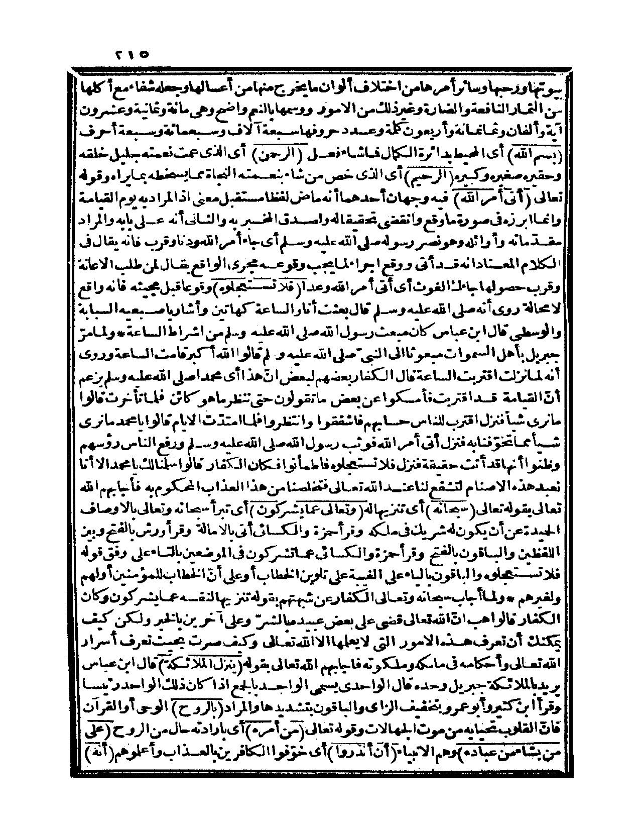 بيوتها ورحبها وسائر أمرها من اختلاف ألوان ما يخرج منها من أعسالها وجعله شفاء مع أكلها من الثمار النافعة والضارة وغير ذلك من الأمور ووسمها بالنعم واضح وهي مائة وثمانية وعشرون آية وألفان وثمانمائة وأربعون كلمة وعدد حروفها سبعة آلاف وسبعمائة وسبعة أحرف.