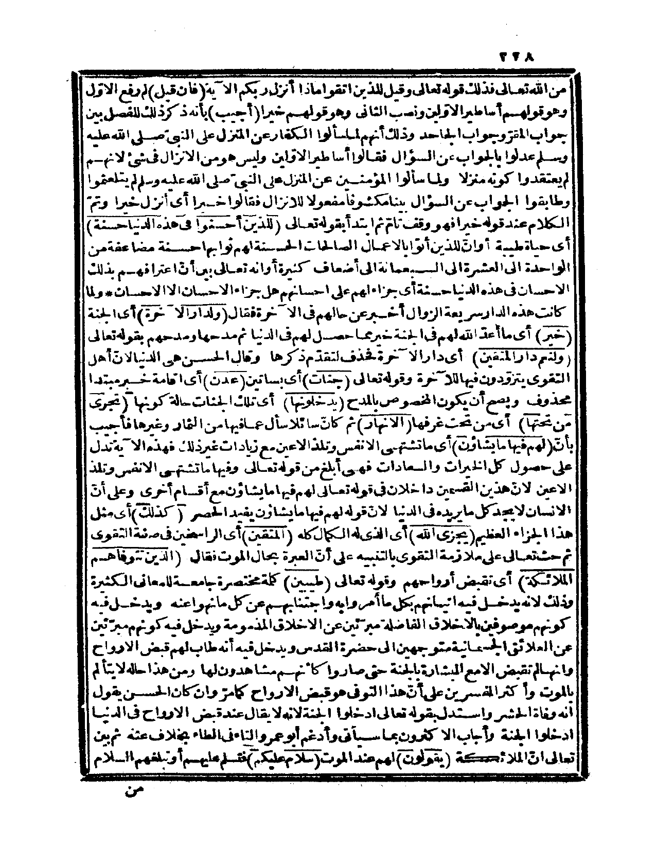 من الله تعالى فذلك قوله تعالى: {وقيل للذين اتقوا ماذا أنزل ربكم} الآية فإن قيل: لم رفع الأول وهو قولهم أساطير الأوّلين ونصب الثاني وهو قولهم خيراً أجيب: بأنه ذكر ذلك للفصل بين جواب المقرّ وجواب الجاحد، وذلك أنهم لمّا سألوا الكفار عن المنزل على النبي صلى الله عليه وسلم عدلوا بالجواب عن السؤال فقالوا أساطير الأولين وليس هو من الإنزال في شيء لأنهم لم يعتقدوا كونه منزلاً. ولمّا سألوا المؤمنين عن المنزل على النبيّ صلى الله عليه وسلم لم يتلعثموا، وطابقوا الجواب عن السؤال بيناً مكشوفاً مفعولاً للإنزال، فقالوا: {خيراً} أي: أنزل خيراً، وتمّ الكلام عند قوله {خيراً} فهو وقف تامّ، ثم ابتدأ بقوله تعالى: