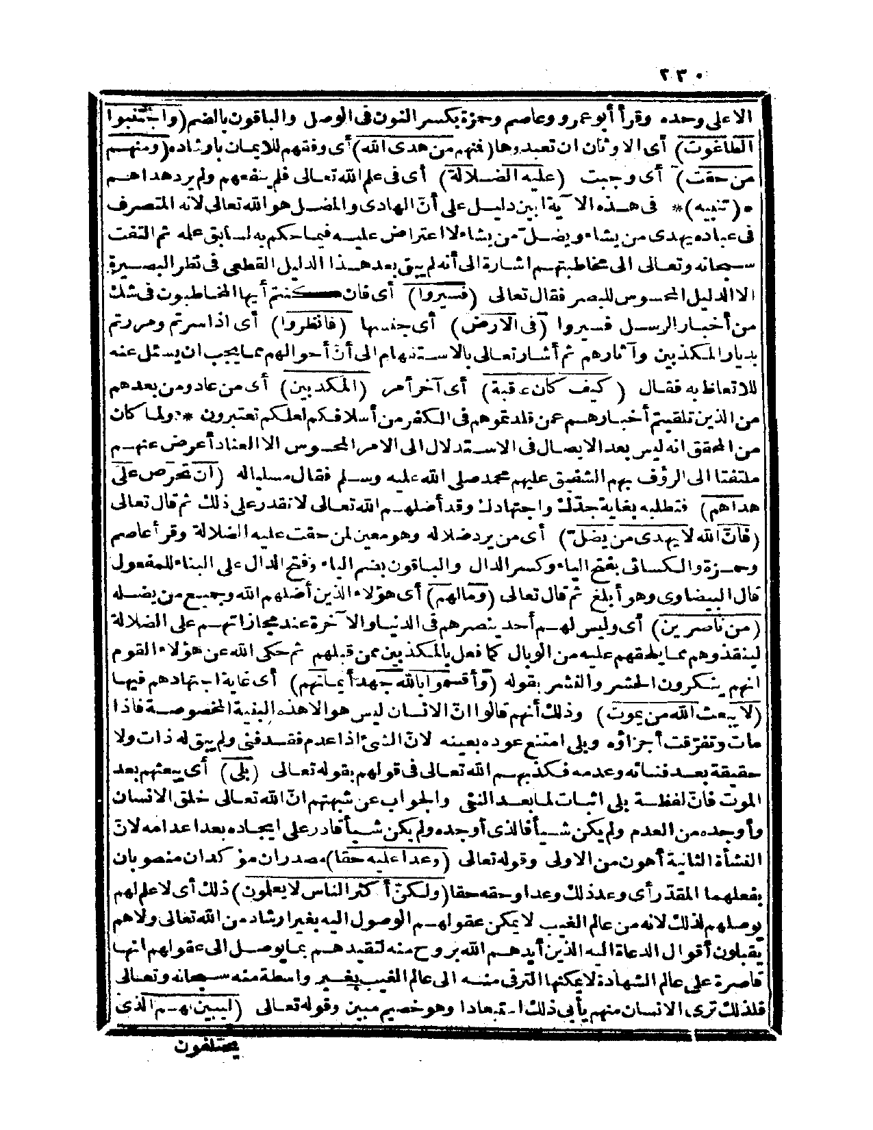 {ولكنّ أكثر الناس لا يعلمون} ذلك، أي: لا علم لهم يوصلهم لذلك لأنه من عالم الغيب، لا يمكن عقولهم الوصول إليه بغير إرشاد من الله تعالى ولا هم يقبلون أقوال الدعاة إليه الذين أيدهم الله بروح منه لتقيدهم بما يوصل إلى عقولهم أنها قاصرة على عالم الشهادة لا يمكنها الترقي منه إلى عالم الغيب بغير واسطة منه سبحانه وتعالى، فلذلك ترى الإنسان منهم يأبى ذلك استبعاداً وهو خصيم مبين.